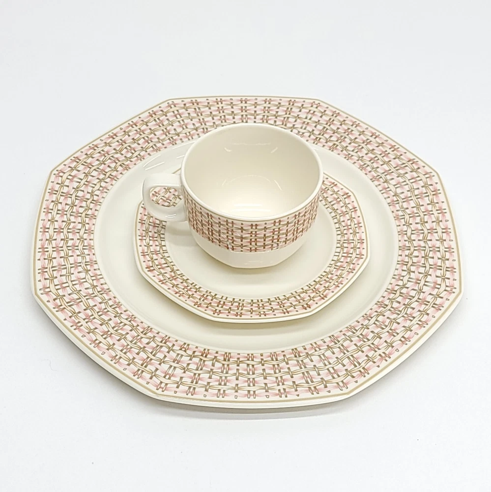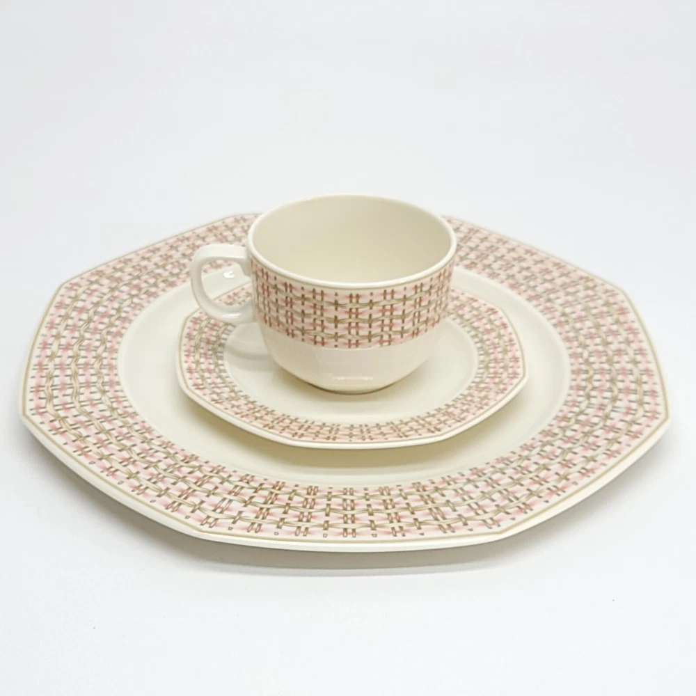 Set of 3. Cup, saucer and plate. Plate measures 10.75" across. Saucer measures 6" across. All 3 are in excellent condition. We are happy to answer any questions you may have. All items are packaged with care and shipped within one business day or sooner. Thanks for stopping by!
