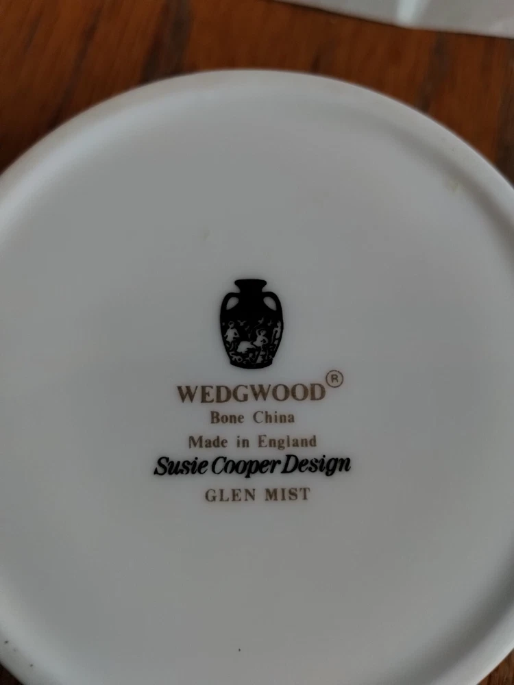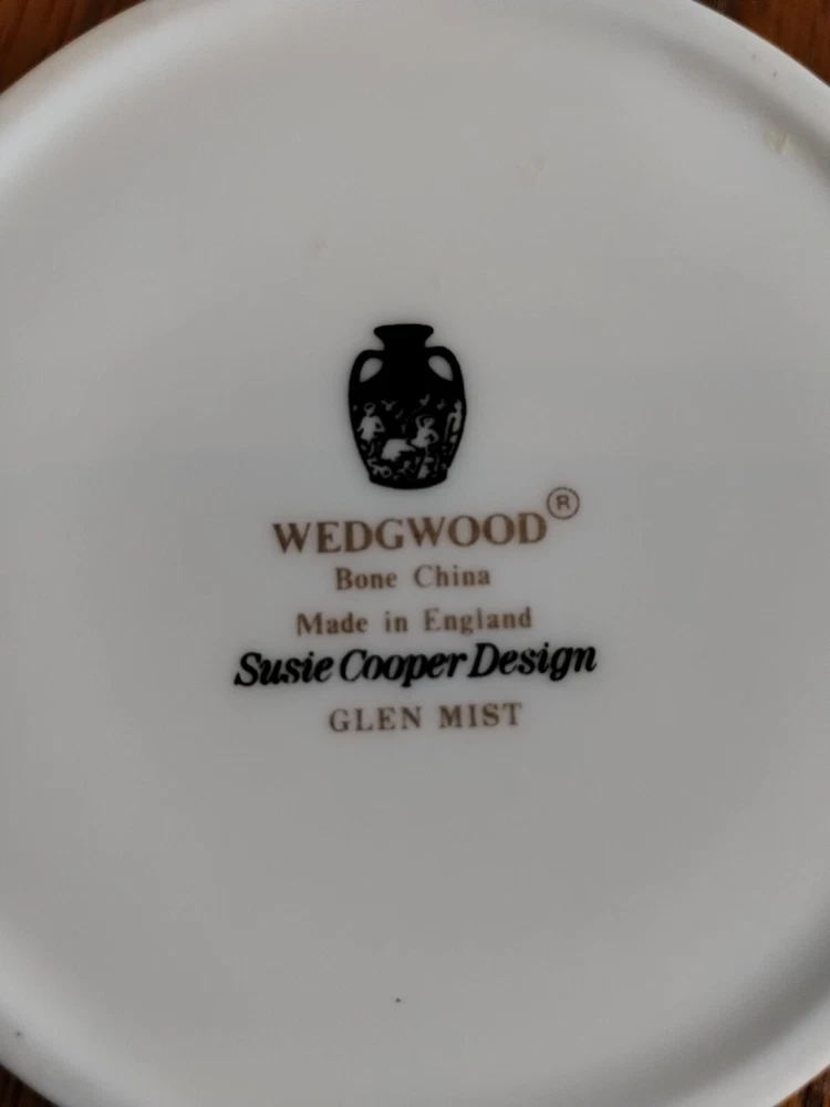 This rare Wedgwood Glen Mist bone china trinket dish is a stunning piece designed by Susie Cooper. Made in England, it features a beautiful multi-color design that is sure to add a touch of elegance to any collection. The dish is made of high-quality bone china and is perfect for storing small items or serving as a decorative piece. It is a must-have for any collector of decorative collectibles and is sure to be a conversation starter. Don't miss out on the opportunity to own this unique and beautiful piece!