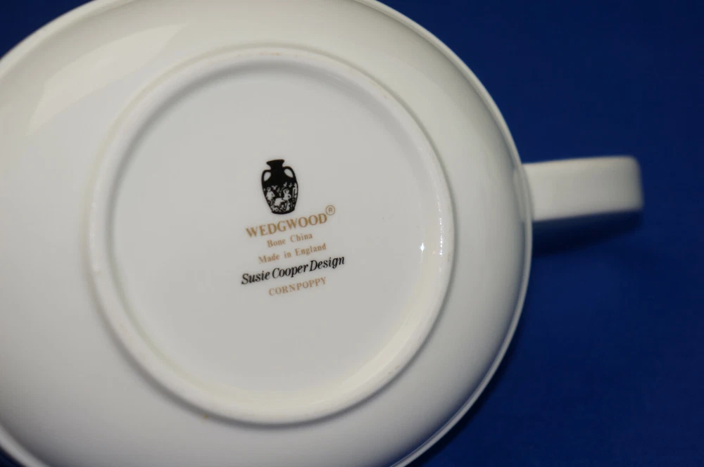 "Wedgwood Susie Cooper Corn Poppy" Gravy Boat, 7 1/2" Good very lightly used condition with no chips, cracks, crazing. E-bayers have their own way to describe their items, this is mine. Good used will have utensil marks and show some wear. Good lightly used has utensil marks, very light wear. Good very lightly used might have a few utensil marks, very light wear. Almost new, means I see no real signs of wear of any kind but won't sell as new. New means I know they are NEW. Please read the ad, look at the pictures and ask question before you buy. I want you to be happy with your purchase. I happily combine shipping. Please add all of your items to the shopping cart and request invoice from seller to get the combined shipping. I'm sorry but FLAT RATE boxes can not be combined. I have been packing breakables and dishes for years! I use fresh bubble wrap and packing peanuts, and as I pack thousands of dishes each year, I do it very well. However I use the postal service and at times they do not understand the word "FRAGILE", or they have seasonal workers. This is why I insure all boxes. If your order does have any damage, you are required to keep the box, all packing materials and the damaged item for any claim. May you always know that God loves You!!