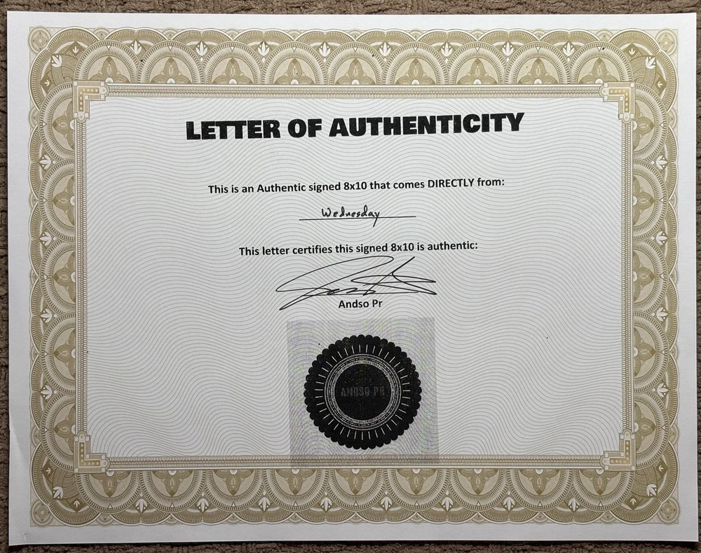 Wednesday Cast signed photograph. Comes with COA seen in photos. Great condition. I got it online from a seller with great reviews -Jenna Ortega -Catherine Zeta-Jones -Luis Guzman -Isaac Ordinez -George Burcea Selling it as is, I don't accept returns Let me know if you have any questions! :)