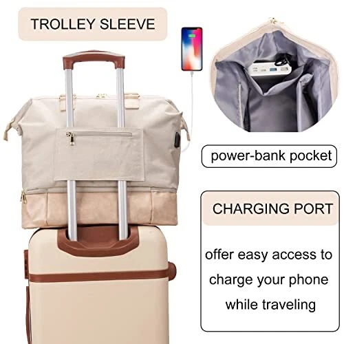 Menu 1. We require immediate payment. 2. We currently accept payment via eBay managed payments only. 3. Once payment is cleared, we will dispatch your shipment within 1-3 business days. Please refer to the "Shipping" tab for more information regarding shipping speed to your destination. Weekender Bag with Shoe Compartment Travel Tote Overnight Bag, Personal Item Bag for Airlines 17 Inch, Beige Product description [Customer Service],If you have any quality problems with weekander bag, please feel free to contact the seller support. We will free refund or exchange. [LAPTOP SLEEVE], padded laptop sleeve protect your laptop while traveling, fits up to 15.6 inch laptop [SHOE COMPARTMENT], the bottom compartment is designed to keep your shoes, toiletries and travel essentials separate [USB CHARGING PORT], offer easy access to charge your phone while traveling(power bank not included), t is a power banker side pocket inside. How to charge your phone? 1. Connect to your power bank via an inside usb-cable. 2. plug your charging cable into the outside usb port and connect your phone. [OHTER FEATURES]: trolley sleeve, easy outside zip-pocket, padded crossbody strap, SIZE: 17”L 16”H 8”D PLEASE MESSAGE US IF YOU HAVE ANY OTHER QUESTIONS, AND MANY THANKS FOR READING ALL OF THIS. Copyright ©#. All Rights Reserved.