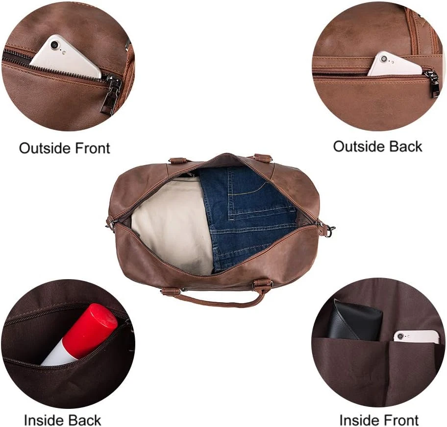 Dimensions:21.2"/10.8"/11.7"(L*W*H) Features: ✅Better practicality ✅With shoe pouch ✅Cushioning design of shoulder strap ✅Stylish vintage bag Package includes: *1 x Weekender overnight bag. *1 x Adjustable shoulder strap.