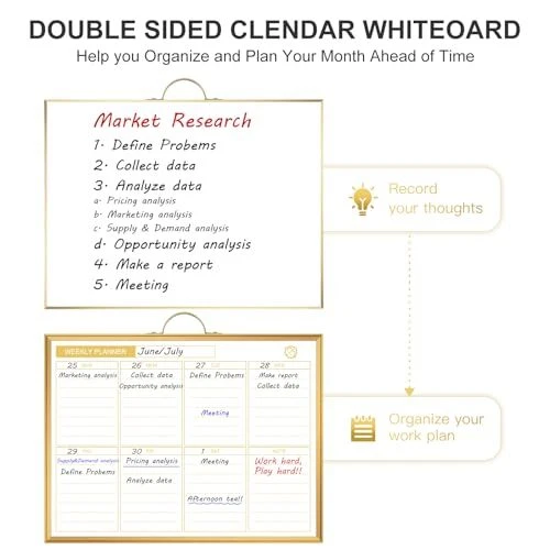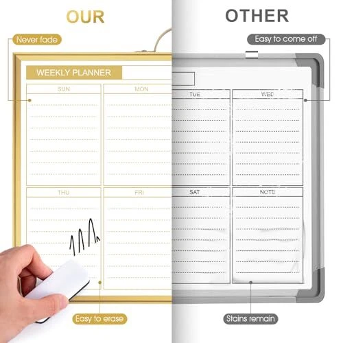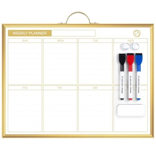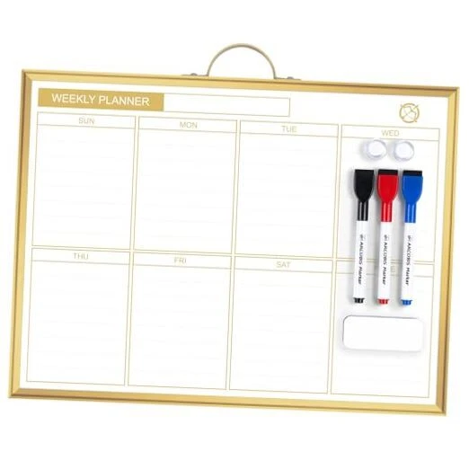 Return Policy Fast Delivery Trusted seller Weekly Dry Erase Board for Wall, 12" x 16" Small Magnetic White Board Calendar Dry Erase, Double-Sided Whiteboard Planner for to Do List, Planning, Memo, School, Home, Office, Kitchen, Gold Product Description Clear Lines & Smooth Writing & Easy to Clean: Our calendar board has 4 layers, 3 layers basic layer with an additional layer of varnish protection layer, so the lines will never fade and easy to erase. The board surface has undergone 100000 writing & erase tests with a longer lifespan. Weekly Planner & Whiteboard: The dry erase board has double-sided design, allowing you to have two projects going on. One side with weekly planner which is great for busy people to keep in track of events, dates or use as to-do list, aid to daily tasks. The other sided is blank. It is the best tool for home teaching or memo. Modern & Portable Design: Balance work, life and everything in between with our Gold Metal Frame Dry Erase Calendar Board. Built with a durable aluminum frame in a brushed matte gold finish, this sleek calendar whiteboard adds a touch of style to any home office, meeting room, school classroom, dorm room or commercial space. It is portable with a handle on the top, you can hang on the wall to remind you not to forget the important thing. Super Value Whiteboard Set: The 16 X 12 inch white board comes with 3 markers, 4 magnets, and 1 dry eraser. Great help for clerks, managers, teachers, students, parents etc. Perfect for homeschooling, distance learning, daily reminders, grocery lists, to-do lists, meal plans and grocery lists etc. without paper wasting. Multi-Purpose: The weekly calendar whiteboard provides a clear and visual overview of your schedule, tasks, and events at a glance, helping you better plan and prioritize. Besides, in a shared space, it helps keep everyone informed about common activities and responsibilities. Shipping Returns Payment Shipping Shipping is FREE to all addresses other than APO/PO boxes in the lower 48 states. All our stock ships from US-based warehouses. Shipped via USPS or UPS (depending on location and package weight) Unless stated otherwise, all orders will ship within 24-72 hours of your payment being processed. Check our feedback to see the great reviews of FAST shipping we offer. Returns Seller does not accept returns Payment We currently accept payment via eBay managed payments only. Once payment is cleared, we will dispatch your shipment within 1-3 business days. Please refer to the "Shipping" tab for more information regarding shipping speed to your destination.