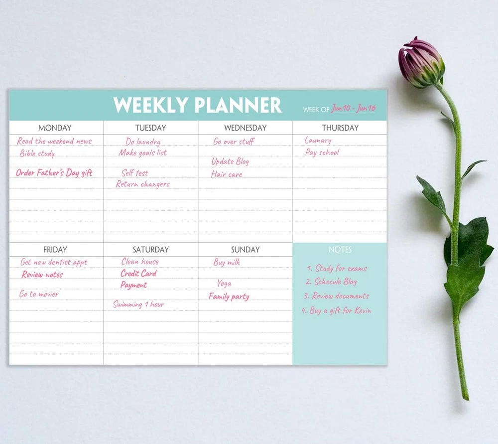 Store New Arrivals Add to Favorite View Feedback Contact Fast deliveries to the customer's home Quality customer service John Make the customers happy! Weekly Planner Notepad - Tear off Planning Pad with Daily Schedule & Calendar, 52 Sheets, 100Gsm Paper, Undated Weekly to Do List Notepad, 10X7 In Description STAY ORGANIZED & IMPROVE PRODUCTIVITY - Undated weekly planner notepad to help you organize your daily tasks, responsibilities, schedule and stay on your task & goals & planning. Stay organized and motivated each day and each week, improve your productivity with this desktop weekly planning pad 52 PAGES - Weekly calendar pad, enough for a full year of weekly planning. 10 x 7 inch planning pad, plenty of room to write in appointments, notes, check lists etc. THICK PAPER - Weekly planning pad with 100gsm smooth paper for easy writing and reducing ink leakage. It responds well to almost all pen types, fountain pen, gel pen, ballpoint pen, highlighter, pencil and etc. They are glued on the top edge to a cardboard backing CLEAN DESIGN - This weekly to do list notepad contains weekly day spread and notes section, allows you to prioritize by your priority tasks, write your to-dos, mark reminders and important events PERFECT FOR - All busy people or makes for a wonderful gift for Holiday, Christmas, Birthday This undated weekly planner notepad measuring 10 x 7 inch, is a simple and clean weekly calender pad which is helpful to organize your daily tasks, responsibilities, schedule and stay on your task & goals & planning. Tear-away sheets allow for a fresh, uncluttered start to each week. It is perfect as a checklist and stylish reminders, which could improve your productivity effectivity. Item model number WP-A4-52-TEAL Sheet Size 10 x 7 Inches Calendar Type Weekly Number of Items 1 Format Notebook Binding Unknown Binding Cover Material Paper, Cardboard Material Paper Material Type Paper Manufacturer Part Number WP-A4-52-TEAL Pages 52 Pages Item Weight 9.1 ounces Product Dimensions 8.25 x 5.8 x 0.4 inches Ruling Plain Year 2021 Target Audience Adult Size 10"x7" ABOUT US We offer the best prices around on high quality products. Our E-store includes media such as books, movies, music and games while offering electronics, toys, sporting apparel, clothing, tools, general home, garden items and more. SHIPPING We are always working hard to ensure your package arrives as soon as possible. Please understand that some factors like weather, high postal traffic, and the performance of shipping companies are outside of our control. We offer free shipping to the lower 48 states and ship within 2 business days of payment, usually sooner. We do not accept P.O. Boxes. Please provide a physical address. For shipping outside of the continental USA, we only use eBay's Global Shipping Program. The item is shipped to KY and then sent to the rest of the world. International customers are responsible for all duties and taxes. Continue to 'check out' to calculate costs for shipping the item to your country. Messages regarding eBay's Global Shipping Program MUST be directed at eBay EXCLUSIVELY. RETURNS We offer a 30-Day Return Policy on items in which you are not completely satisfied with. You have the option of a full-refund or an exchange of the item. No returns are available on items shipped outside of the USA PAYMENT We accept PayPal. CONTACT US This page content is yet to come Please ad us to your favorite seller and visit again later Thank You CUSTOMER SATISFACTION We try our very best to make sure every customer is completely satisfied. If there's a problem, message us! We're happy to help. WE ACCEPT