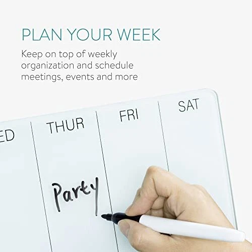 Return Policy Fast Delivery Trusted seller Weekly Whiteboard Planner - Small Dry Erase Glass Whiteboard to Do Calendar for Office Desk - Dry Erase Schedule Board - 16 x 6 Inches Product Description PLAN THE WEEK: Make note of any important meetings, remind yourself of tasks by creating a to-do list or simply organize your week, day by day, with this dry-erase whiteboard for your desk. It features every day of the week for easy planning. COMPACT: The compact design of this dry-wipe whiteboard means it takes up little space and makes it suitable for use on a desk, tabletop or counter. Make sure your weekly plan is always insight when it's needed! SPECS: The weekly planner measures 16 x 6 inches (40.5 x 15.2cm) and is made using tempered glass and stainless steel. Some assembly is required. You will also receive 1x marker pen (black). DRY ERASE: Rather than wasting pads of paper, use this dry erase board to plan your week. It can be wiped clean and used over and over again to plan every day of every week of every year! TEMPERED GLASS: Designed using tempered glass for a long-lasting and durable glass weekly planner whiteboard. The board is constructed to last for years to come. Shipping Returns Payment Shipping Shipping is FREE to all addresses other than APO/PO boxes in the lower 48 states. All our stock ships from US-based warehouses. Shipped via USPS or UPS (depending on location and package weight) Unless stated otherwise, all orders will ship within 24-72 hours of your payment being processed. Check our feedback to see the great reviews of FAST shipping we offer. Returns Seller does not accept returns Payment We currently accept payment via eBay managed payments only. Once payment is cleared, we will dispatch your shipment within 1-3 business days. Please refer to the "Shipping" tab for more information regarding shipping speed to your destination.