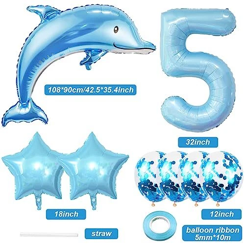 Weenkeey 5th Dolphin Birthday Balloons Giant Dolphin Aluminum Foil Balloon Number 5 Mylar Balloon Ocean Animals Balloons for Ocean Theme Party Supplies Boys Birthday Décor - Light Blue ▼Material: These dolphin birthday balloons set are made of high quality aluminum foil and latex, these balloons will seal automatically after inflation, can be used for times. ▼Color: Light Blue. Its classic colors can create an enjoyable and active dolphin birthday party atmosphere, bring you a memorable party experience. ▼Fun Birthday Party Decorating Kit: You can use these dolphin birthday balloons to decorate your birthday party, use them as unique decoration props for birthday party photos, record all your good times, and organize an unforgettable birthday party for your children, family and friends. ▼Widely Application: Perfect for dolphin theme birthday party decoration, kids birthday party, girl birthday party, etc. It is so cool birthday party decoration for people who love dolphin. ▼Package Included: 1 x dolphin balloon, 1 x number balloon 5, 2 x star balloon, 4 x light blue confetti balloon, 1 x balloon ribbon, 1 x straw. Size as the picture shows. ▼Material: These dolphin birthday balloons set are made of high quality aluminum foil and latex, these balloons will seal automatically after inflation, can be used for times. ▼Color: Light Blue. Its classic colors can create an enjoyable and active dolphin birthday party atmosphere, bring you a memorable party experience. ▼Fun Birthday Party Decorating Kit: You can use these dolphin birthday balloons to decorate your birthday party, use them as unique decoration props for birthday party photos, record all your good times, and organize an unforgettable birthday party for your children, family and friends. ▼Widely Application: Perfect for dolphin theme birthday party decoration, kids birthday party, girl birthday party, etc. It is so cool birthday party decoration for people who love dolphin. ▼Package Included: 1 x dolphin balloon, 1 x number balloon 5, 2 x star balloon, 4 x light blue confetti balloon, 1 x balloon ribbon, 1 x straw. Size as the picture shows. Shipping from the USA All of our products are shipped from the USA, ensuring quick delivery to your destination. Payment We offer the following payment methods: PayPal, credit card, bank transfer, and eBay's secure payment system. Free Shipping & Free Returns Shipping within the USA is FREE. Additionally, any return is absolutely free for you. Risk-Free Purchase You have the option to return an item within 30 days without any justification. We cover the return shipping costs! Fast Shipping We ship immediately upon receipt of payment. Generally, the package is delivered within 2-3 days in the USA. If it takes longer, we will contact you. Quality and Costs Made in Europe, USA, China No customs fees or additional charges Total satisfaction guarantee Invoice with declared VAT available upon request in .pdf format Feedback Your feedback is very important to us. After you pay for your purchase, you will automatically receive positive feedback from us.