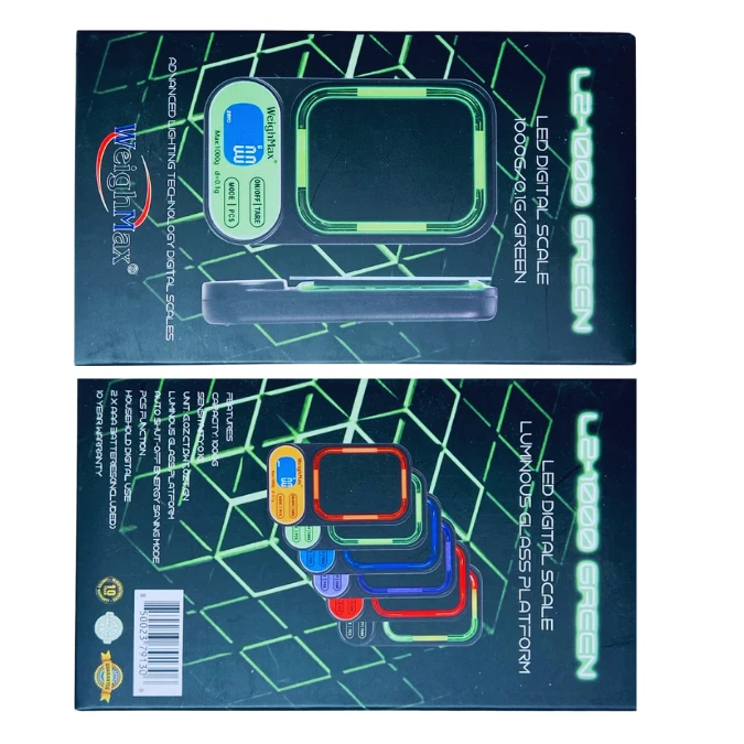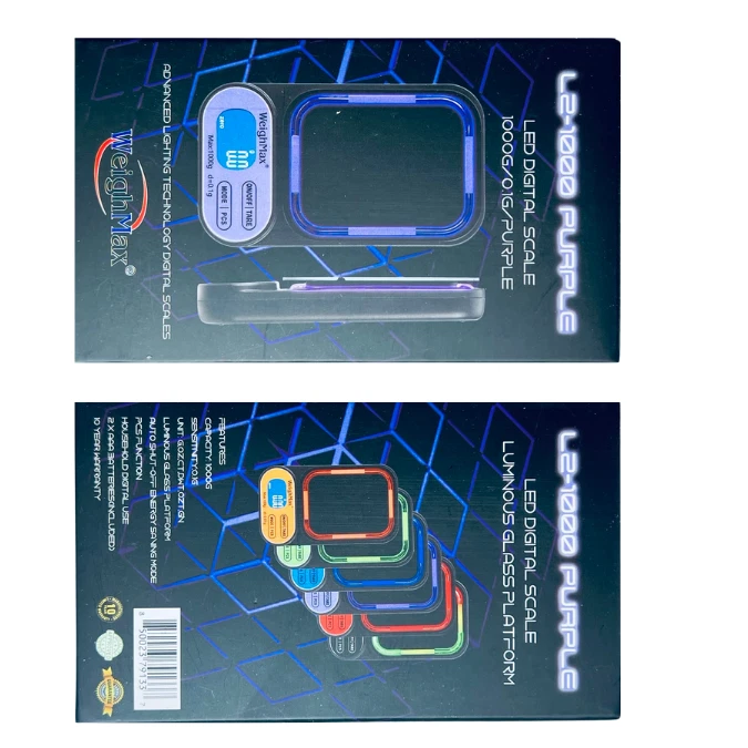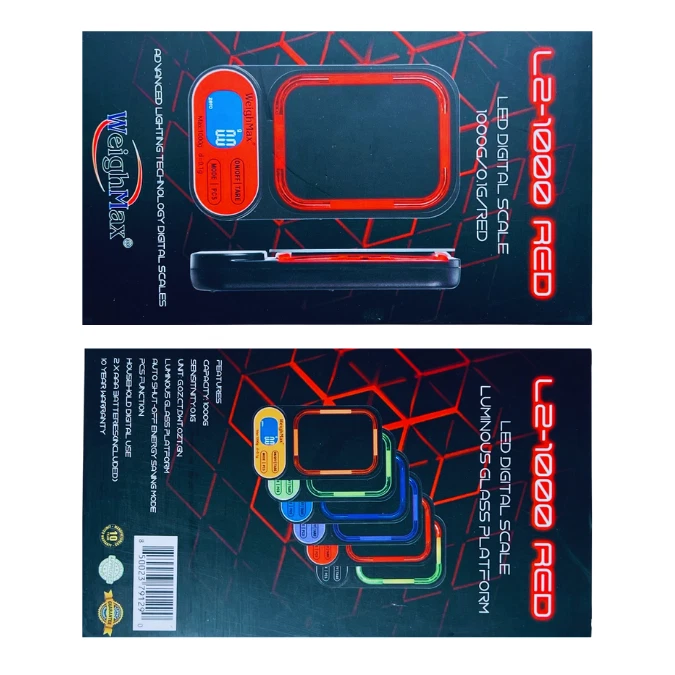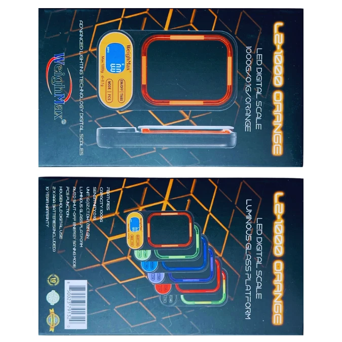 WEIGHMAX L2-1000 X 0.1G LED DIGITAL SCALE – PRECISION AND MODERN DESIGN COMBINED The Weighmax L2 LED Digital Scale offers exceptional performance, durability, and a sleek, modern design. With a high capacity of 1000 grams and a sensitivity of 0.1 grams , this scale is perfect for a wide range of applications, including measuring jewelry, cooking ingredients, or small items. The luminous LED glass platform and advanced lighting technology ensure clarity, style, and ease of use. KEY FEATURES High Precision and Capacity: Accurately measures up to 1000 grams with 0.1g sensitivity , making it versatile for professional and everyday use. Luminous LED Glass Platform: Features advanced lighting technology for enhanced visibility and a stylish, modern design. Multiple Unit Conversions: Easily switch between grams (g) , ounces (oz) , carats (ct) , and pennyweight (dwt) to suit your specific needs. Large Backlit LCD Display: Ensures easy readability with a clear, bright display, even in low-light conditions. Energy-Saving Auto Shut-Off: Automatically powers down after a period of inactivity to conserve battery life. Durable and Long-Lasting: Built with a sturdy glass platform and backed by a 10-year warranty for lasting reliability. Compact and Portable: Lightweight design makes it easy to store or take on the go. SPECIFICATIONS Feature Details Capacity 1000 grams Readability 0.1 grams Weighing Units g, oz, ct, dwt Platform Luminous LED Glass Display Large Backlit LCD Auto Shut-Off Yes (energy-saving feature) Power Source 2 AAA batteries (included) Warranty 10 years WHAT’S INCLUDED IN THE BOX? Weighmax L2 Digital Scale 2 AAA Batteries User Manual WHY CHOOSE THE WEIGHMAX L2 LED DIGITAL SCALE? High Precision and Versatility: Perfect for tasks requiring a balance of accuracy and capacity up to 1000 grams . Stylish and Functional Design: The luminous LED glass platform enhances both usability and aesthetics. User-Friendly Features: Multiple unit conversions, large backlit display, and auto shut-off simplify your experience. Durable and Reliable: Built to last, with a robust 10-year warranty for peace of mind. Portable Convenience: Compact and lightweight, ideal for professional use or at home. The Weighmax L2 LED Digital Scale delivers precision, style, and reliability in one exceptional package. Whether for professional or personal use, this scale ensures accurate and consistent results every time.