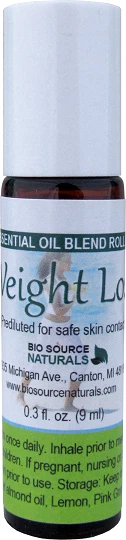 Weight Loss Essential Oil Blend Roll-On - Aromatherapy - Therapeutic Quality - 0.3 fl oz (9 ml) Amber Glass Roll-On Bottle with Stainless Steel Roller Ball and Cap Description: Weight Loss Blend combines the citrus powers of Lemon and Pink Grapefruit with Peppermint. All oils are known to help reduce the appetite, food cravings and sweet cravings after inhalation. These oils are also considered beneficial in the reduction of cellulite. Properties of Essential Oils in Weight Loss Essential Oil Blend Lemon : Clears the mind, boosts metabolism, detoxifies, and dissolves fat. * Pink Grapefruit : Energizing and detoxifying; dissolves fat. * Peppermint : Vitalizes and energizes, reduces appetite, and curbs cravings. * Packaged: Available in 0.3 fl oz (9 ml) amber glass roll-on bottle with stainless steel roller ball and cap. Safety shrink wrapped. Directions: Topical application is recommended. This roll-on is diluted in Sweet Almond oil and is ready to apply directly to skin. Weight Loss Essential Oil Blend Safety Information: Avoid use on hypersensitive, diseased or damaged skin. Do not apply to face or near the face of infants or children. Dilute concentrate with carrier oil or direct skin contact. Phototoxic, so avoid using it when exposed to sunlight 12 hours prior to topical application. Do not use if using ventricular fibrillation, or if diagnosed with GERD (Gastroesophageal reflux disease). Should not be used during pregnancy or if epileptic. For external use only. Disclaimer : These statements have not been evaluated by the FDA. None of these products are intended to diagnose, treat or cure disease. Biosource Naturals was founded by a Naturopath, Aromatherapist, EFT Practitioner, Reiki Master in 2006. We supply Pure essential oils verified by GC and/or other QC testing .