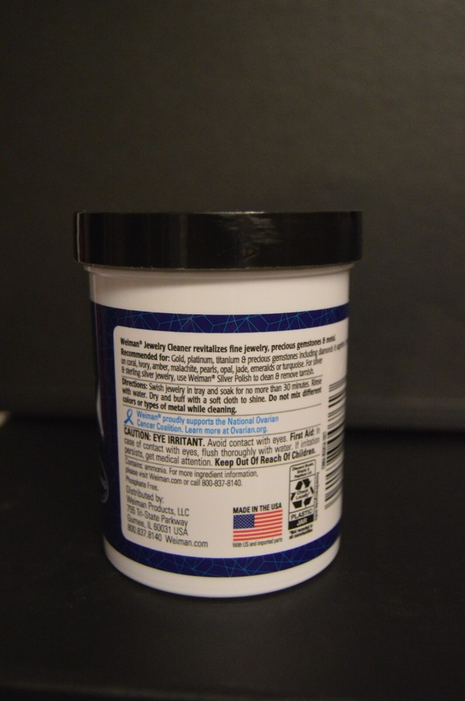Weiman Fine Jewelry Cleaner 6 fl.oz./177 ml. Weiman Jewelry Cleaner revitalizes fine jewelry, precious gemstones & metal. Recommended for gold, platinum, titanium & precious gemstones including diamonds and sapphires. Do not use on coral, ivory, amber, malachite, pearls, opal, jade, emeralds, or turquoise. For silver & sterling silver jewelry, use Weiman Silver Polish to clean and remove tarnish. Made in USA. Directions: Swish jewelry in tray and soak for no more than 30 minutes. Rinse with water. Dry and buff with a soft cloth to shine. Do not mix different colors or types of metal while cleaning. Shipped promptly. ๐ฎ Packed carefully. ๐ฆ Smoke free. Thanks for shopping! ๐๏ธ ๐๏ธ ๐๏ธ ๐ ๐ ๐ Return item must include all original items undamaged, unused, in re-saleable condition, with all original packaging, etc. We will not offer a full refund if it has been altered/used in any way.