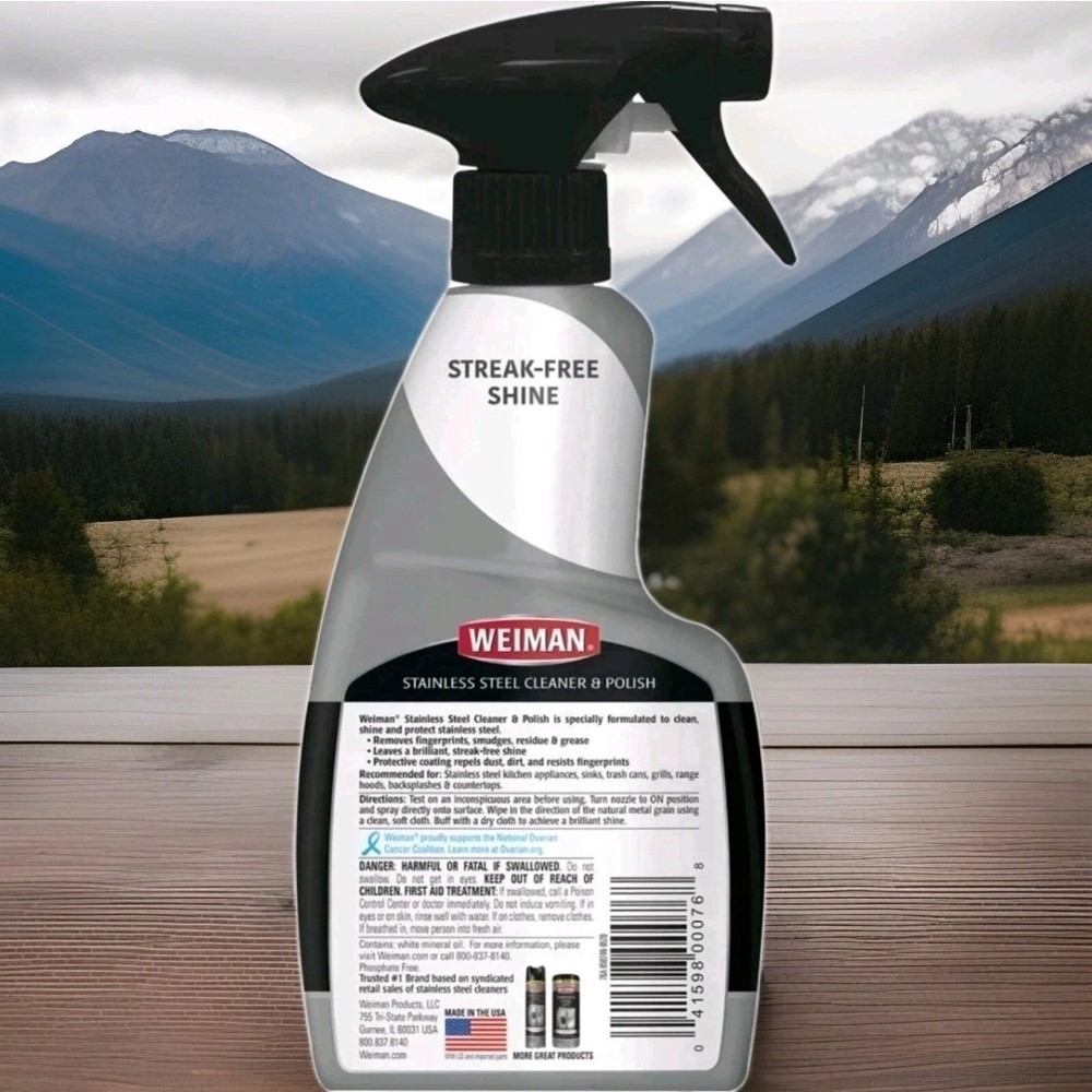 Weiman Stainless Steel Cleaner and Polish Spray offers a convenient and effective solution for maintaining the shine and cleanliness of your stainless steel surfaces. The 12-ounce spray bottle delivers a burst of citrus scent, leaving a refreshing odor behind, perfect for any kitchen or bathroom space. Crafted by Weiman, a brand synonymous with quality cleaning products, this stainless steel cleaner is designed to tackle grease and grime with ease. Its quick-drying formula ensures a streak-free finish, making it a reliable choice for everyday use or those occasional deep cleans.