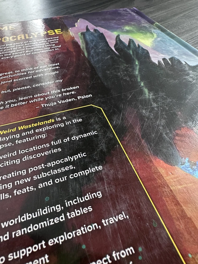 A 5th Ed D&D supplement focused on playing strange psychedelic magic apocalyptic settings. Gently used but good condition.