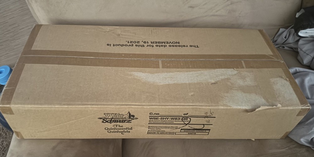 FACTORY SEALED! Slight damage to the box, but nothing that would compromise the product. Message me for inquiries Will be shipped in a bubble wrapped secure box and insurance will be included in shipping. 5 sets of “The Quintessential Quintuplets TCG: Quintessential Set” guaranteeing at least one SP per set (5 Minimum).
