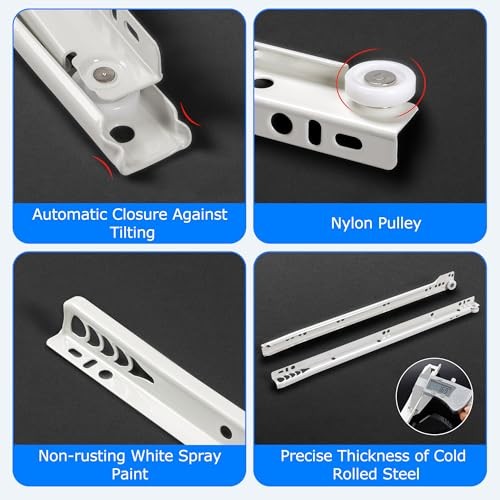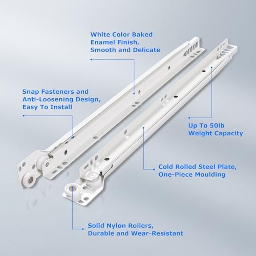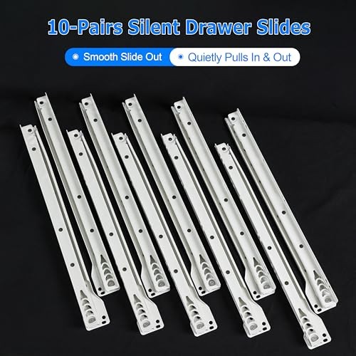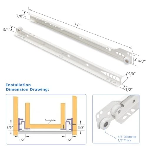 Return Policy Fast Delivery Trusted seller WelFurGeer 10 Pairs 14 Inch Drawer Slides, Drawer Slide Kit – Replace Drawer Track Hardware, Bottom Mount Cabinet Drawer Rails for Dresser, Wardrobe, Kitchen & Furniture Product Description 【Self-Closing Design】This drawer slide has an elaborate design, the smooth-gliding tracks features a self-closing design that commences at the final 2-1/2 inch from the end of the 15-3/4 inch long tracks when closing. 【Premium Material】The 14 drawer slides are made of high-quality materials that can withstand heavy loads. The 14 inch length offers extra support and stability. The max load capacity is up to 50lb. 【Easy to Install】This cabinet drawer slides come with all the necessary hardware for a quick and easy installation. Enough screws would be provided. You can have your drawers up and running in no time. 【Simple and Durable】Our drawer slides are constructed of steel tracks with a white powder coated finish and self-lubricating plastic rollers. They are built to last and will provide years of reliable use. 【After-Sale Service】If you have any question about drawer slides 14 inch, please contact us and we promise solve it until you are satisfied. Replacements or other solutions would be provided for you. Shipping Returns Payment Shipping Shipping is FREE to all addresses other than APO/PO boxes in the lower 48 states. All our stock ships from US-based warehouses. Shipped via USPS or UPS (depending on location and package weight) Unless stated otherwise, all orders will ship within 24-72 hours of your payment being processed. Check our feedback to see the great reviews of FAST shipping we offer. Returns Seller does not accept returns Payment We currently accept payment via eBay managed payments only. Once payment is cleared, we will dispatch your shipment within 1-3 business days. Please refer to the "Shipping" tab for more information regarding shipping speed to your destination.