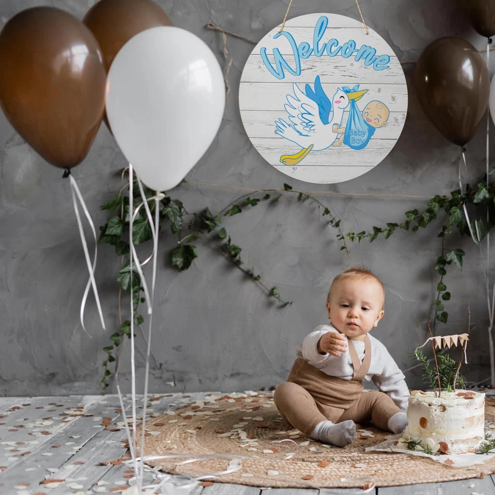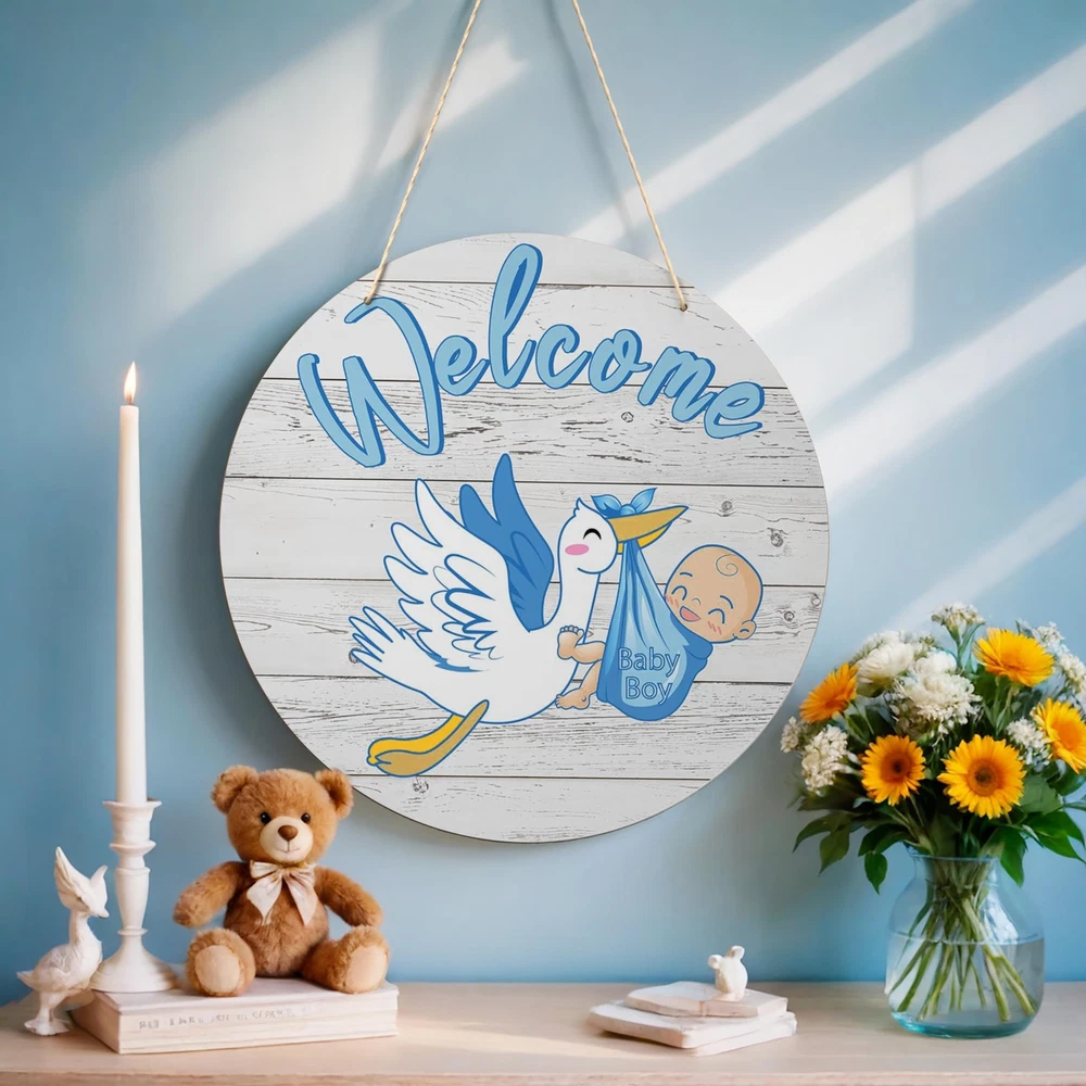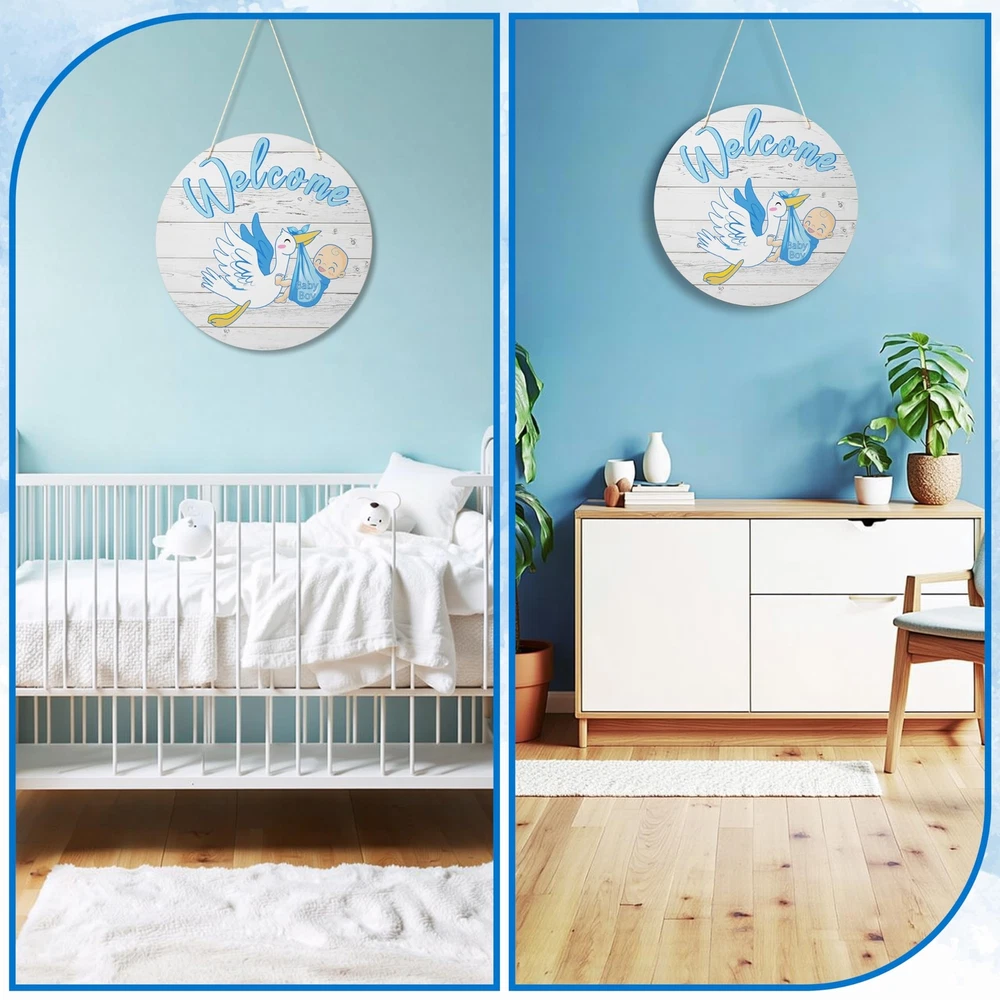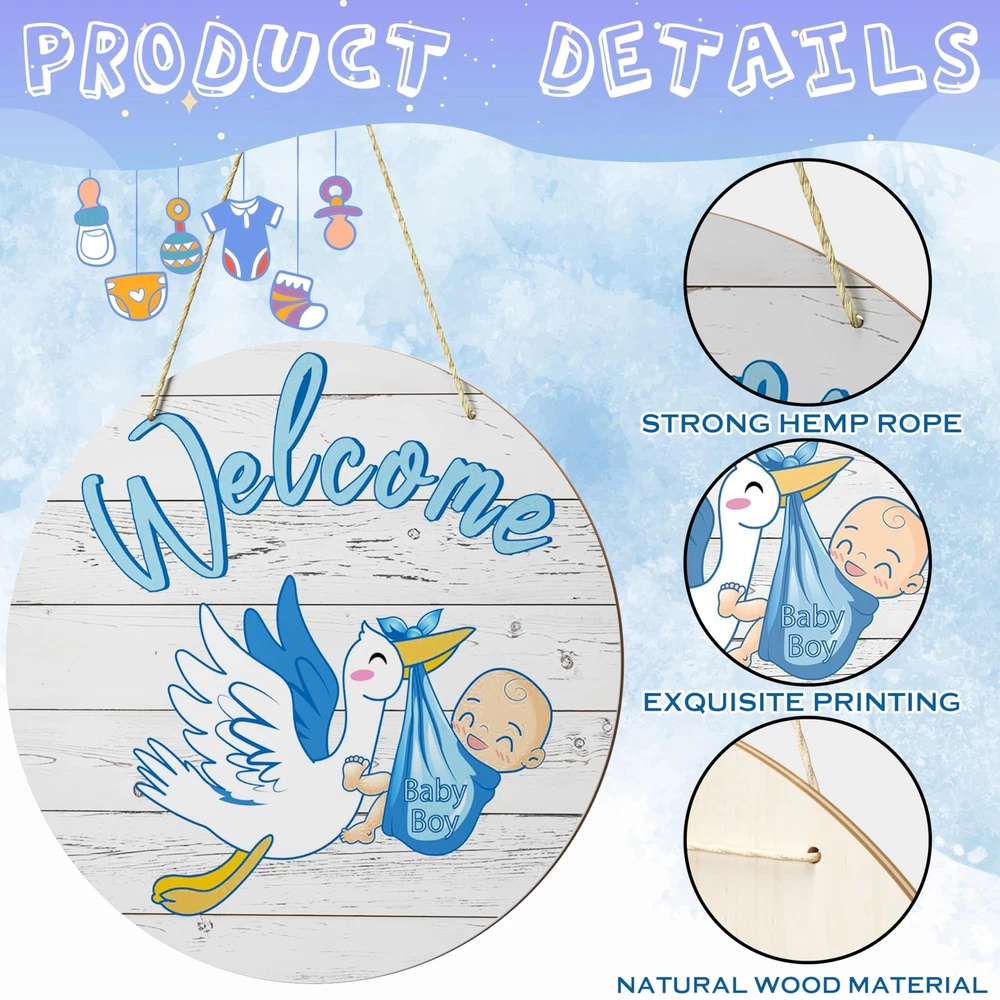 Welcome Baby Boy Sign Front Door Decoration, 12 Inch Round Wood Sign Wall Hanging Outdoor, Farmhouse, Porch, Front Door Sign Decor for Baby Shower Gender Reveals Birthday Party Supplies Product Details Style: Baby Boy1 Brand: TESAFNG MPN: TG-WoodSign UPC: Does not apply EAN: Does not apply Color: Blue Brand: TESAFNG Material: Wood Theme: Welcome Recommended Uses For Product: nurseries, baby showers, gender reveal parties, and baby-related events Included Components: Hanging hardware Brand Name: TESAFNG Recommended Uses For Product: nurseries, baby showers, gender reveal parties, and baby-related events Material Type: Wood Shape: Round Style Name: Baby Boy1 Theme: Welcome Color: Blue Item Dimensions L x W: 11.81"L x 11.81"W Pre Printed Text: Welcome Baby Boy Mounting Type: Door Mount Unique Design for Baby's Room: Our welcome baby sign features a unique and adorable design that will complement any nursery decor. With charming illustrations and heartfelt messages, it's the perfect addition to welcome your little one into the world Premium Quality Material: Crafted from high-quality wood, our hanging round wood sign is sturdy and durable, ensuring it will last for years. You can trust it to stand the test of time and stay looking beautiful throughout your baby's childhood Easy to Hang & Display: This holiday front door sign is lightweight yet sturdy, making it easy to hang on doors, walls, or any other flat surface. The included hanging hardware ensures a secure and hassle-free installation Versatile & Multi-Purpose: This welcome baby decorations is not just for nurseries! It can also be used as a charming decoration for baby showers, gender reveal parties, or any other baby-related event. The versatile design and colors make it a perfect fit for any occasion Thoughtful Gift Idea: Whether you're a new parent or shopping for a friend, our baby wooden sign is a thoughtful and practical gift. It's a beautiful way to celebrate the arrival of a new baby and will bring joy to any parent's heart