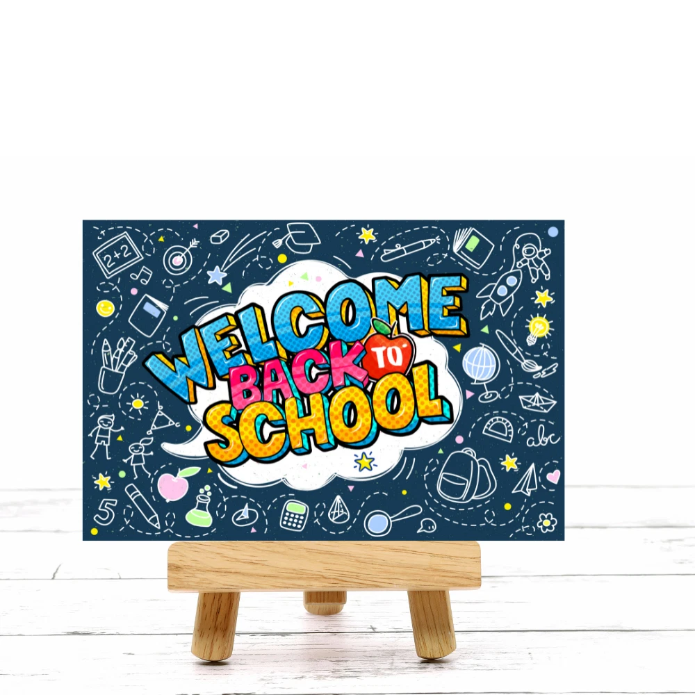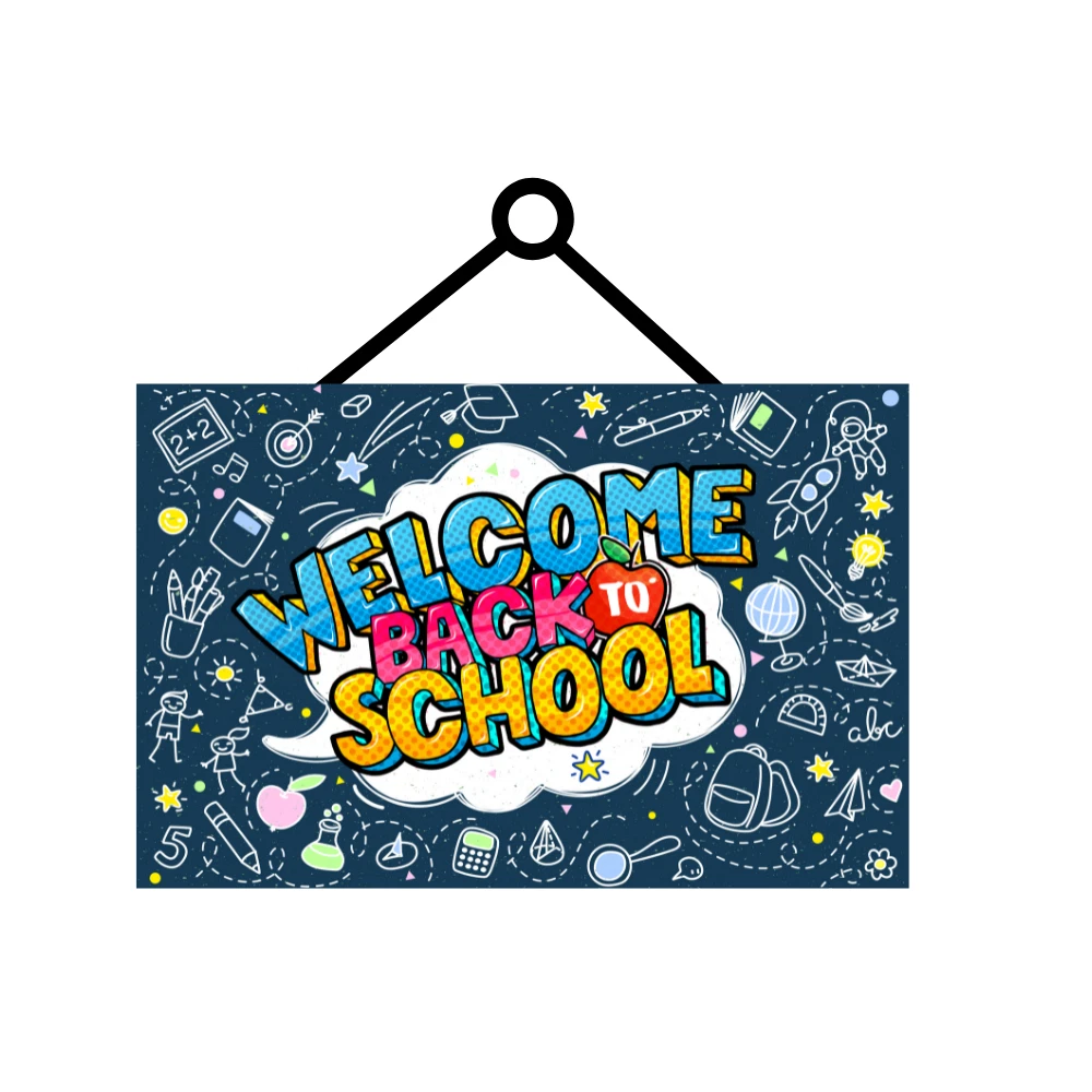 This is a large, colorful, aluminum sign with the wording "Back to School". Indoor/Outdoor. UV protected. Size is 12 x 6 inches Intended Use: no holes- sign or use with easel hanger with cord- use for wall, door or garden 2 holes on sides- use to attach to wreath Please type your choice in the notes section at checkout or simply hit contact seller.