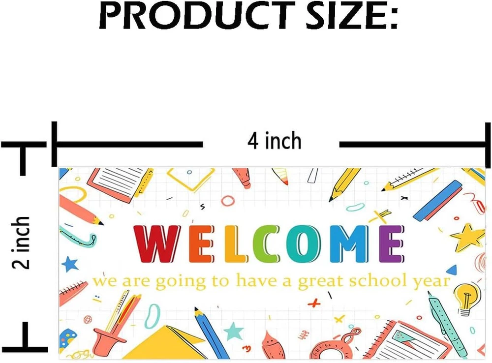 1. Welcome back to school stickers just need to be peeled off, and you can firmly stand anywhere you want to decorate. 2. You will receive 180 welcome back to school stickers, each measuring 2 x 4 inches, which is sufficient to meet your decorative needs. 3. On the first day of school, this decorative sticker features various patterns of learning supplies, showcasing the youthful atmosphere of the school. It is very suitable for classrooms, offices, primary schools, high schools, universities, colleges, and kindergartens. 4. These back to school decorative stickers can be pasted on cards, labels, bouquets, packaging, candy bags, gift wrapping paper, cupcakes, or other handmade items. 5. Welcome back to school stickers can also decorate various candy bags. When your classmates, friends, and teachers see bags, boxes, packages, bubble emails, and envelopes, they will be very happy. 1. Welcome back to school stickers just need to be peeled off, and you can firmly stand anywhere you want to decorate. 2. You will receive 180 welcome back to school stickers, each measuring 2 x 4 inches, which is sufficient to meet your decorative needs. 3. On the first day of school, this decorative sticker features various patterns of learning supplies, showcasing the youthful atmosphere of the school. It is very suitable for classrooms, offices, primary schools, high schools, universities, colleges, and kindergartens. 4. These back to school decorative stickers can be pasted on cards, labels, bouquets, packaging, candy bags, gift wrapping paper, cupcakes, or other handmade items. 5. Welcome back to school stickers can also decorate various candy bags. When your classmates, friends, and teachers see bags, boxes, packages, bubble emails, and envelopes, they will be very happy.