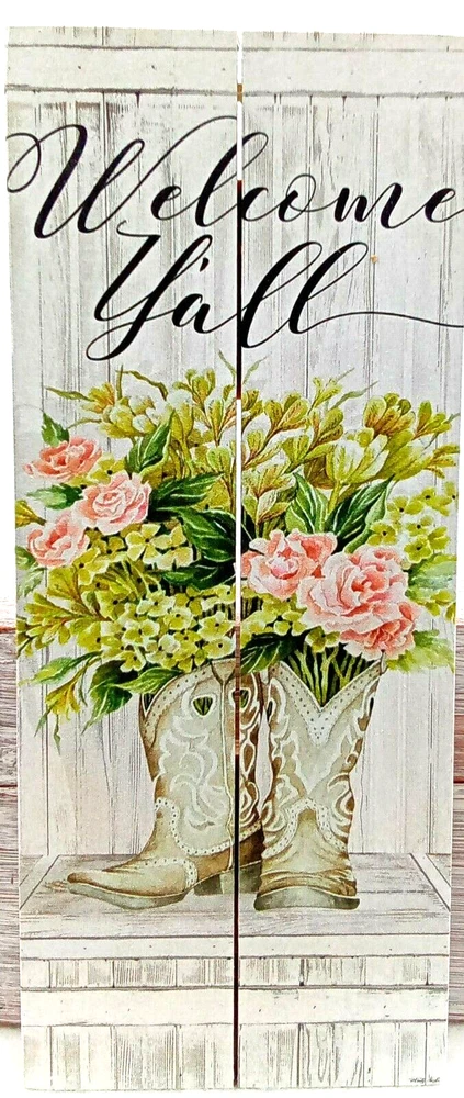 Welcome Ya'll Cowgirl Boots Wood Pallet Sign Pink Floral White Gray Shiplap Hang USA 9.75". Condition is Brand New/Unused. Made in Lancaster, PA USA. Measurements are 9.75"Tx4"W. Sign has a shiplap look background with pink & green floral. It has a metal tooth hanger on back. The sign is wood. Please check out our photos for further information. If you have any questions or concerns, please contact us. Thank you for your support. Please check out The Burly Owl Lady eBay store for more great products! Shipped USPS. We ship vintage and new items. We carefully pack with care to ensure the safety of each item. We do not pass these packaging costs onto the buyer. Furthermore, we do not charge any extra fees for handling. We only charge for the USPS shipping charge. We do monitor shipping prices frequently. In most cases, we do find the USPS to be the most inexpensive way to ship our products. We try to be as detailed as we possibly can in our photos and descriptions. We try to mention any imperfections in our vintage items. We may miss things from time to time or our photos may not be enough clarification for you to see the item. We will be glad to answer any questions or send you more photos. If at any time, you have a question or issue, please contact us immediately. We will contact you within 24 hours. We want to make sure you have a good experience in purchasing any of the products. If you are happy with your purchase, please leave feedback. It will help us to grow and offer more great items in our store! Thank you for your interest in one of the many products in our eBay store! Renee Burly Owl Lady