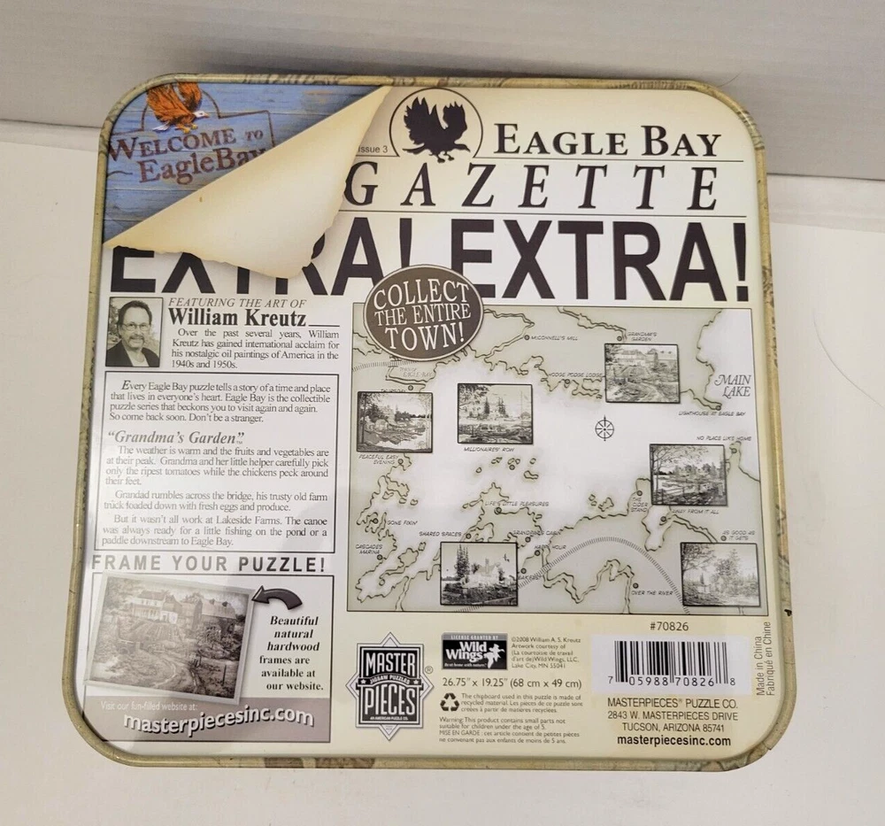 Welcome to Eagle Bay Grandma's Garden #70826 Jigsaw Puzzle 26.75"x19.25" Metal Box Each item is carefully packaged to prevent any damage and is shipped immediately with tracking.