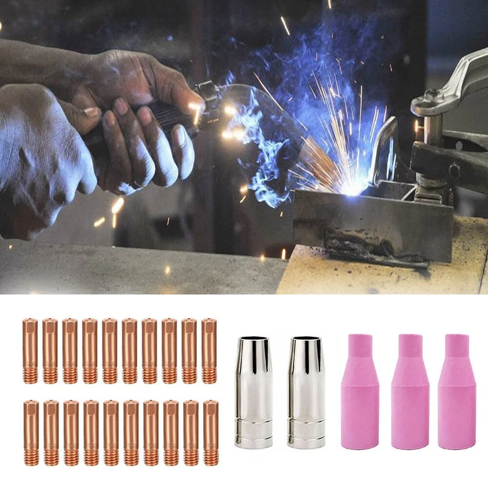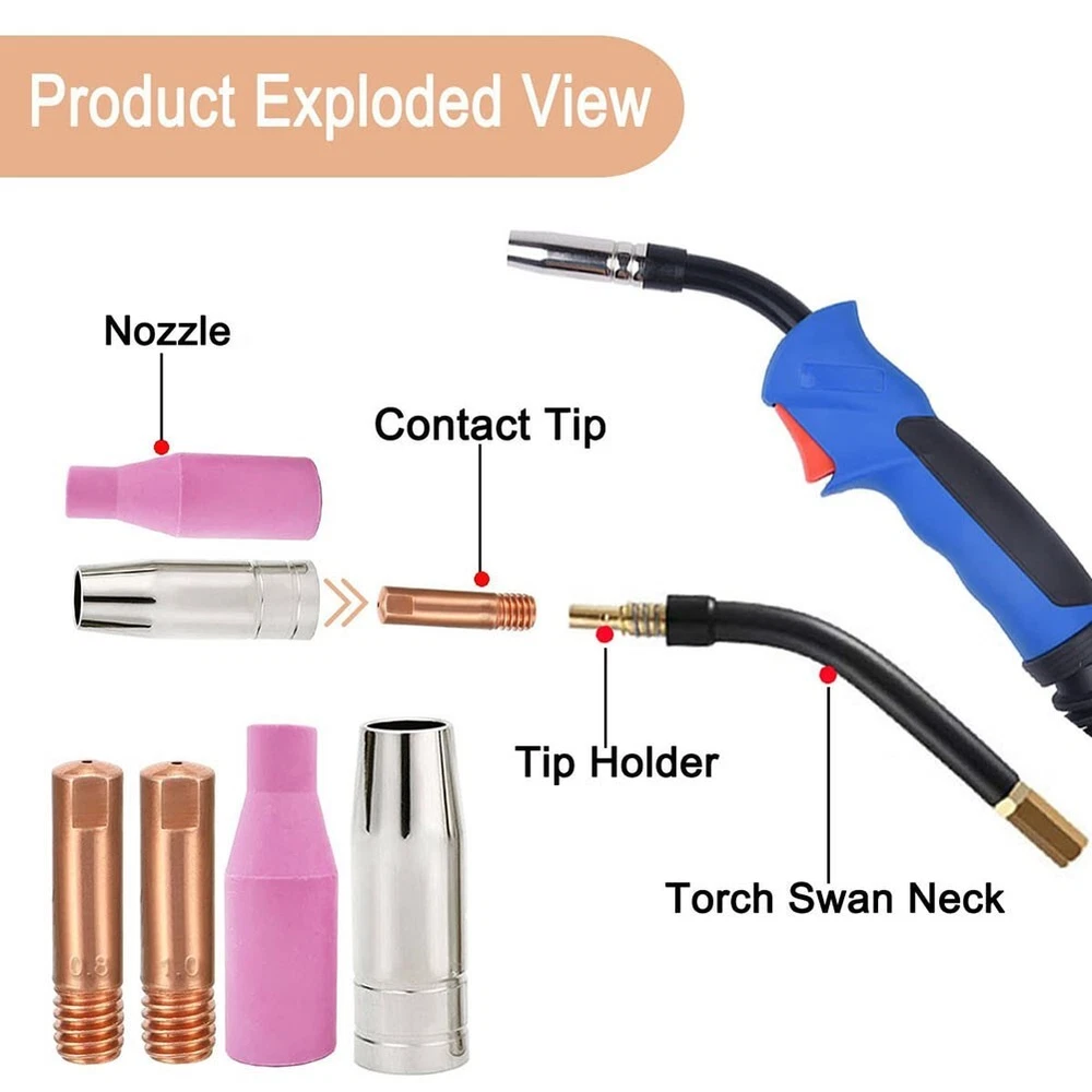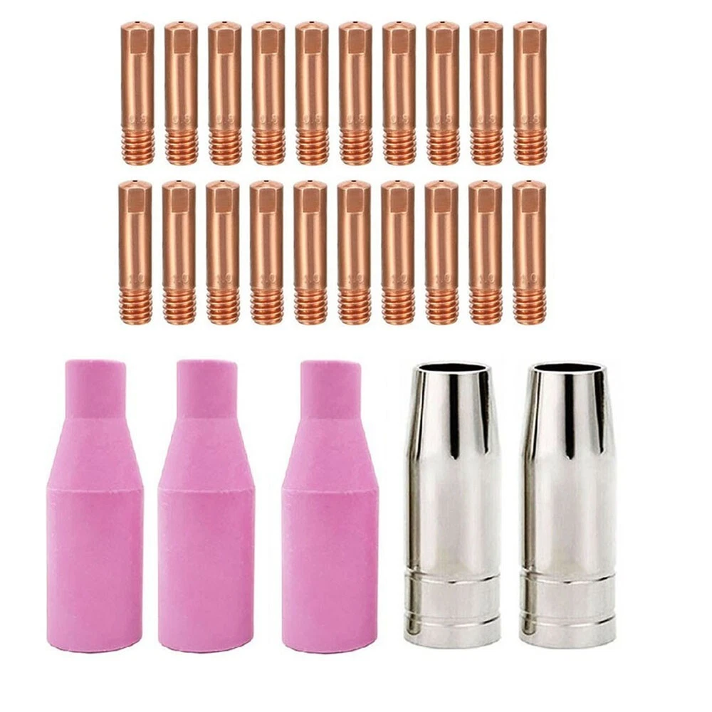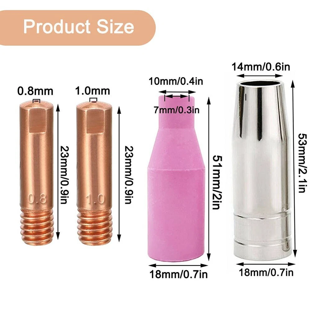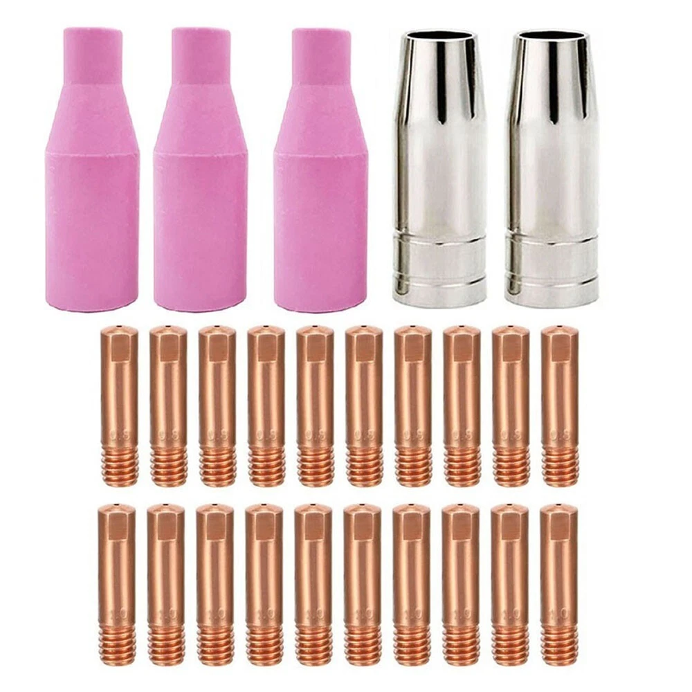 Welding Torch Component Set 25PCS Compatible with For MIG For MB15 AK15 DESCRIPTION Features: *Compatibility: This product is designed to be compatible for MIG for MAG welding torches for AK15, for MB15, and for 14AK, as well as for HITBOX welding machines including for MIG200, for MIG250, for MT2000, and for HBM1200. *Quality Materials: The torch accessory is constructed from good-quality metal and copper, providing excellent heat resistance for long-lasting use. *Easy Installation: The components can be easily assembled on the burner without the need for special tools, making installation straightforward, convenient, and quick for users. *Good Components: The accessories offer outstanding thermal properties, with high temperature resistance. Their strong texture ensures a long service life, effectively meeting work demands and facilitating smoother operations. *Package Contents: The package includes 10 contact tips (0.8mm/ 0.030"), 10 contact tips (1.0mm/0.039"), 2 gas nozzles, and 3 earthenware nozzles, providing a comprehensive set of tools for various welding applications. Specifications: Part Name: Welding Torch Nozzles Kit Material: Metal,Earthenware Size: Standard Color: Pink,Silver,Copper Package Content: 10 x contact tips (0.8mm/ 0.030") 10 x contact tips (1.0mm/0.039") 2 x gas nozzles 3 x earthenware nozzles Note: 1. The real color of the item may be slightly different from the pictures shown on website caused by many factors such as brightness of your monitor and light brightness. 2. Please allow slight manual measurement deviation for the data. POLICES Shipping Payment WARRANTY We only ship to confirmed ebay Order addresses. Please comfirm that your Order address is in line with your shipping address. Please kindly note that the c ombined shipping is not provided because the shipping fee is calculated by weight. Also, the each additional item means exactly the the same color and size. It takes about 7 -15 working days to US; about 10-30 working days to other countries. Transit time may be a little delayed because of the bad weather and customs inspection . If you do not receive your item within 30 working days since payment finished, please contact us immediately for further assistance. Payment must be completed within 5 days. If you have any problems about payment, please contact us via ebay message. We strive for 100% customer satisfaction! Positive Feedback is very important to us. If you have any questions, p lease feel free to contact us via "Ask seller a question" . We will reply your email within 24 working hours.