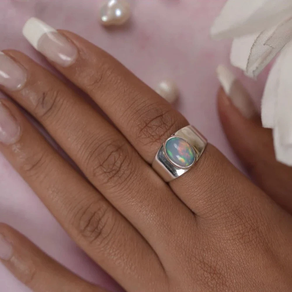 Description Welo Ethiopian Opal 925 Silver Gemstone Ring Handmade Promise Day Unisex Jewelry Introducing the Welo Ethiopian Opal 925 Silver Gemstone Ring – a stunning and unique piece of jewelry that combines the vibrant beauty of Ethiopian opal with the elegance of sterling silver. This handcrafted masterpiece is designed to make a lasting impression on anyone who lays eyes on it. Whether you’re looking for a meaningful gift for a special occasion or a stylish addition to your personal collection, this ring is the perfect choice. Ideal for Promise Day, engagements, or as a token of love, this unisex ring is a symbol of commitment, beauty, and lasting bonds. Key Features: Exquisite Welo Ethiopian Opal: Known for its mesmerizing play of color, Ethiopian opal is renowned for its ability to reflect a dazzling spectrum of hues. This opal is sourced directly from the Welo region in Ethiopia, famous for producing the finest opals in the world. Each gemstone is unique, offering a magical display of fiery reds, oranges, greens, and blues. The opal in this ring is carefully selected for its brilliant color and exceptional quality, ensuring that every piece is truly one-of-a-kind. High-Quality 925 Sterling Silver: The ring features 925 sterling silver, ensuring durability, shine, and a luxurious feel. Sterling silver is a timeless choice for jewelry, known for its strength and resistance to tarnishing. The polished finish of the silver enhances the opal’s vibrant colors, making it the perfect complement to the gemstone’s natural beauty. The silver band is crafted to provide comfort and style for both men and women. Handmade Craftsmanship: Each ring is meticulously handcrafted by skilled artisans, ensuring the highest level of craftsmanship and attention to detail. From the setting of the opal to the shaping of the silver band, every step in the creation process is done with care to ensure that the final product is nothing short of perfection. The handmade nature of the ring makes it a truly personal and meaningful piece of jewelry. Unisex Design: The timeless and versatile design of this ring makes it suitable for both men and women. Its sleek, modern aesthetic is complemented by the natural beauty of the Welo Ethiopian opal, making it a perfect choice for anyone who appreciates high-quality, eye-catching jewelry. Whether worn as a statement piece or as a subtle accent, this ring is sure to enhance any look. Perfect for Promise Day & Special Occasions: Looking for a thoughtful and meaningful gift for Promise Day, an anniversary, or a special occasion? This Welo Ethiopian Opal ring is the ideal choice. The opal is often associated with love, passion, and commitment, making it a perfect symbol for Promise Day. Whether you're marking the beginning of a new chapter or expressing your love and devotion, this ring is a beautiful and enduring representation of your promises. Durable and Comfortable Fit: Designed with both style and comfort in mind, the band of the ring is smooth and ergonomic, ensuring it sits comfortably on the finger all day long. The durable silver band is resistant to bending, meaning it will retain its shape and quality for years to come. The ring is available in a range of sizes, making it easy to find the perfect fit for your finger. Why Choose This Ring? A Symbol of Love and Commitment: The Welo Ethiopian Opal is believed to bring peace, love, and healing, making this ring a meaningful token of affection. Whether you're celebrating a new relationship, strengthening an existing bond, or expressing a lifelong promise, this opal ring serves as a beautiful symbol of your connection. Versatile and Stylish: Thanks to its unisex design, this ring can be worn by anyone, regardless of gender. Its understated elegance makes it suitable for everyday wear or as a standout piece for special occasions. Whether dressed up for a night out or worn casually, this ring adds a touch of sophistication to any outfit. Perfect Gift for Loved Ones: Give the gift of meaningful, handcrafted jewelry that will be cherished for years to come. This opal ring is a wonderful gift for a partner, spouse, friend, or family member, offering a personal and lasting reminder of your love and care. Its unique beauty makes it a thoughtful gift for birthdays, anniversaries, or just because. Specifications: Main Stone: Welo Ethiopian Opal Material: 925 Sterling Silver Design: Handmade Gender: Unisex Occasions: Promise Day, Engagement, Anniversary, Gift for Loved Ones Ring Sizes Available: [Insert available sizes] Care Instructions: To maintain the opal’s beauty, avoid contact with harsh chemicals, and clean the ring with a soft cloth. Store the ring in a jewelry box when not in use to protect it from scratches. Conclusion: The Welo Ethiopian Opal 925 Silver Gemstone Ring is more than just a piece of jewelry – it's a symbol of love, commitment, and enduring beauty. With its stunning opal and high-quality craftsmanship, this handmade ring is a must-have for anyone who appreciates timeless elegance and meaningful design. Whether you’re celebrating a special occasion or simply adding to your collection, this ring is the perfect choice for you or a loved one. Order yours today and experience the magic of Welo Ethiopian opal in a beautifully crafted, unisex silver ring!