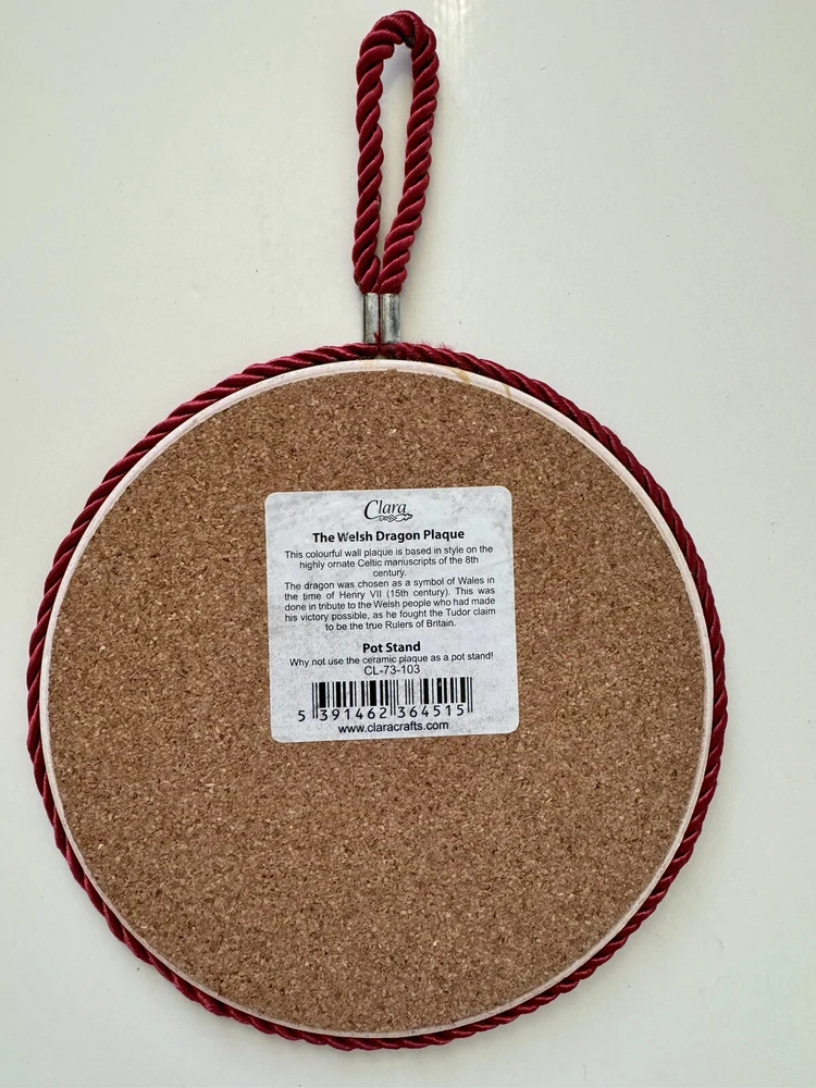 Add a touch of ancient Celtic style to your home decor with this beautiful Welsh Dragon Ceramic Plaque. Made in Ireland by Royal Tara, this round multicolor wall-mounted plaque features a majestic dragon pattern that will bring a unique and mystical vibe to any room. The 7-inch diameter plaque is made of high-quality ceramic material and comes with a rope for easy mounting. This Welsh gift is perfect for adults and can be displayed in the porch, kitchen, home bar, living room, or nursery. The plaque is engraved with the Welsh Dragon pattern and is a great addition to any home decor. Get this Celtic-themed wall plaque and enhance the ambiance of your living space.