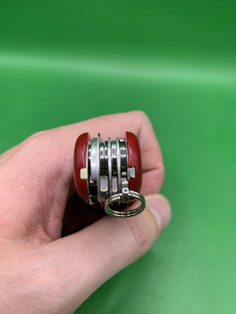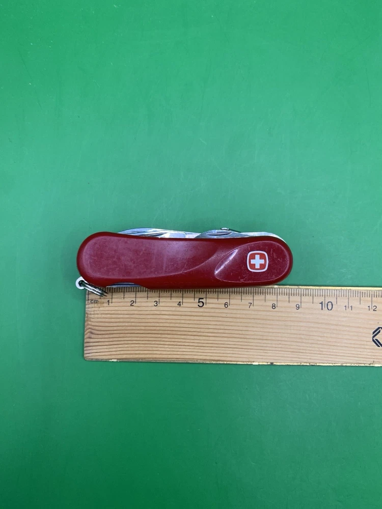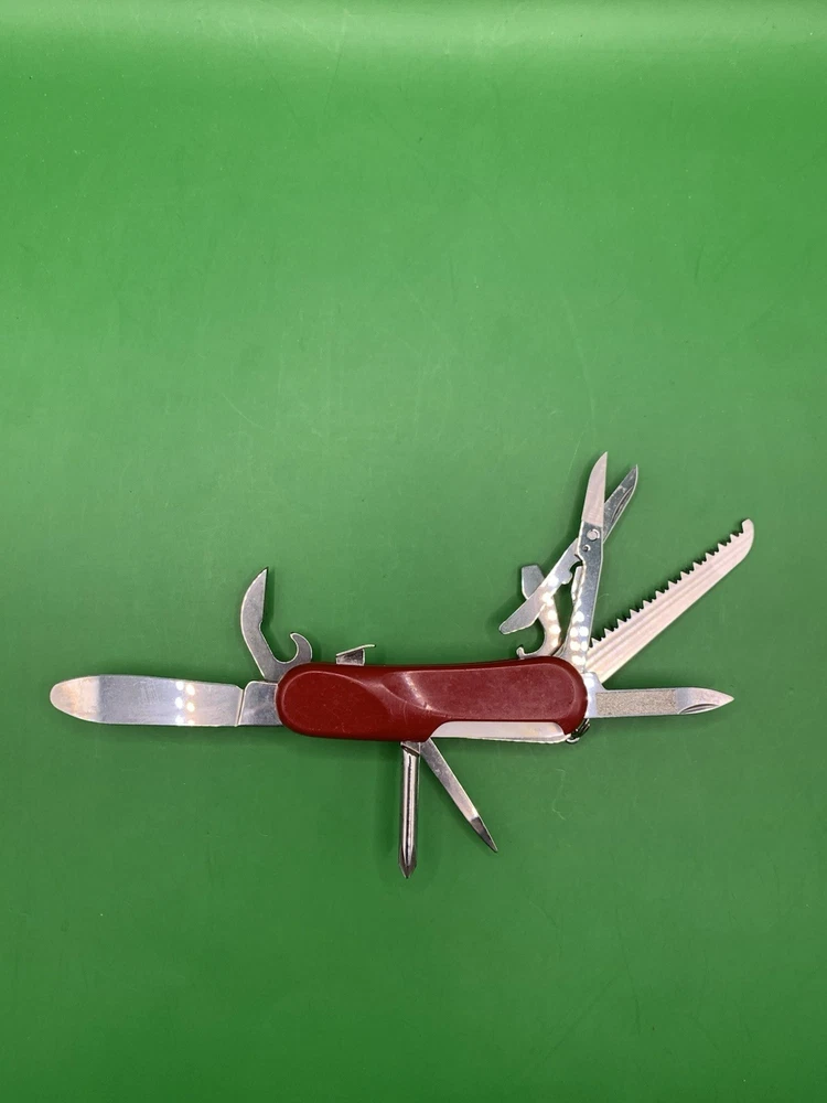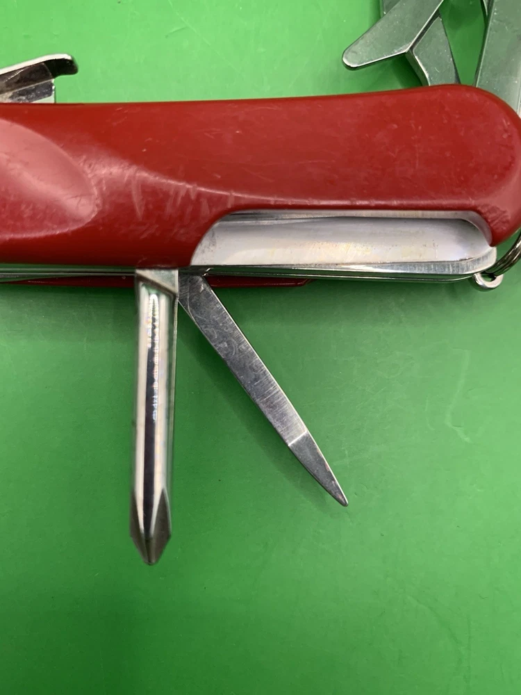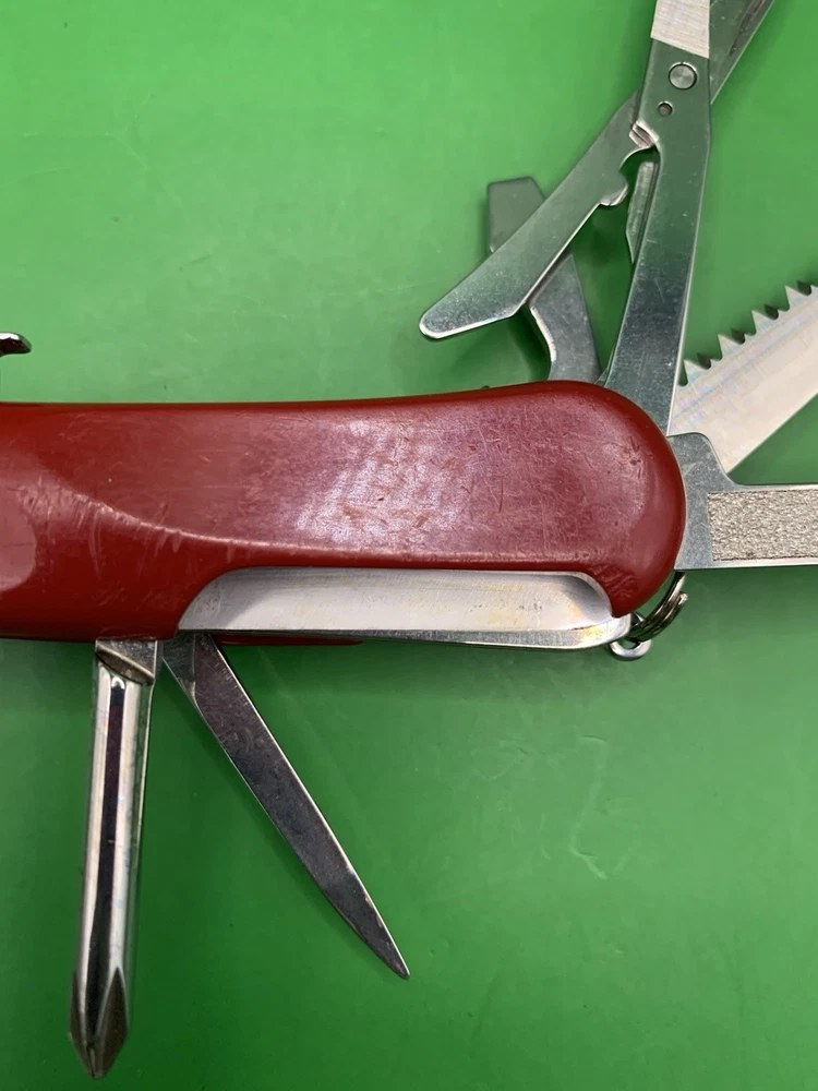 Used Wenger knife. Scales have some wear and the blades may need to be sharpened. The main blade doesn’t open smooth. There is something wrong with the locking system that makes it hard to retract and close the main blade. The main blade does lock into place when opened. All other tools open fine. See pictures for overall cosmetic condition. By purchasing you affirm that you are of legal age and aware of all applicable laws.