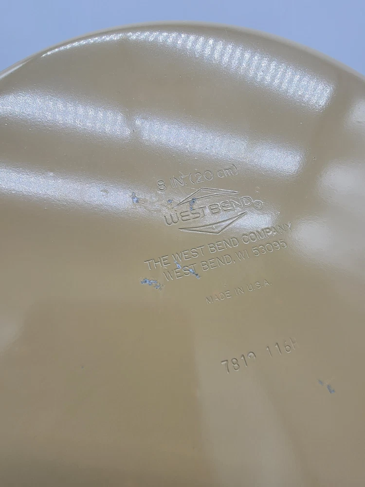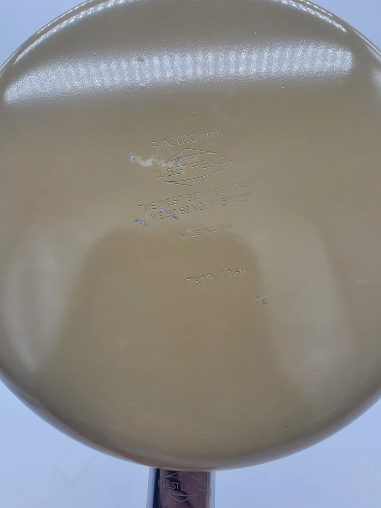 West Bend 8 inch Pan Skillet & Lid Almond VTG 7819 116h Made in USA VTG This listing is for a West Bend 8 inch Pan : Pre-owned and used condition The pan and lid have minimal wear and tear, with light scratching/scuffing There are two areas where it shows visible damage, 1 is located on the side (see picture) and another is on the bottom (picture of bottom), where damage/markings can be observed The inside of the pan is in great condition The skillet measures 8" (inches/in) in diameter Overall in great condition Smoke free home See pictures for measurements We do our best to describe the item, but please take a look at the pictures attached to this listing as they are the exact product that will be sent to the buyer upon payment & processing. Any stands or other items used to prop/display items are not included in the listing, unless otherwise stated. Stock photos are NOT used on ANY of our product postings at JusNTru Treasures. If you have ANY questions, please do not hesitate to reach out. **Look at our other items available at JusNTru Treasures eBay Store*