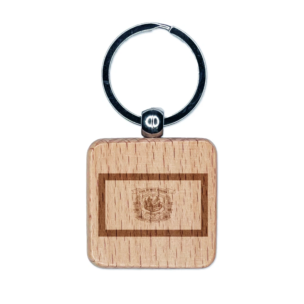 West Virginia State Flag Engraved Wood Square Keychain Tag Charm