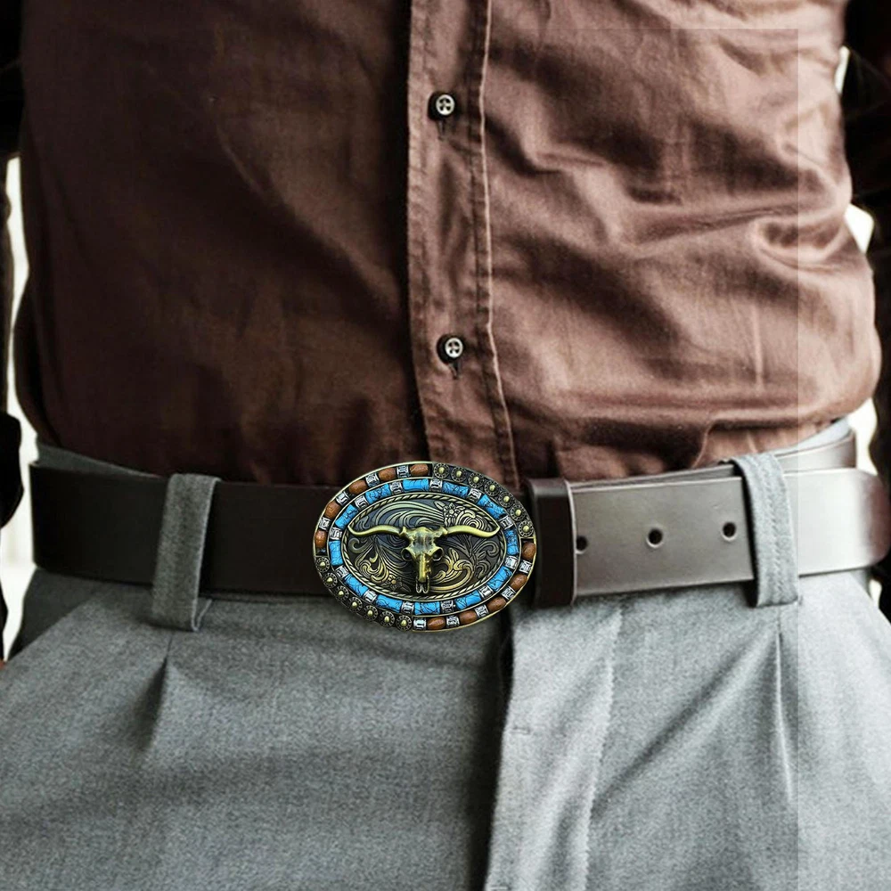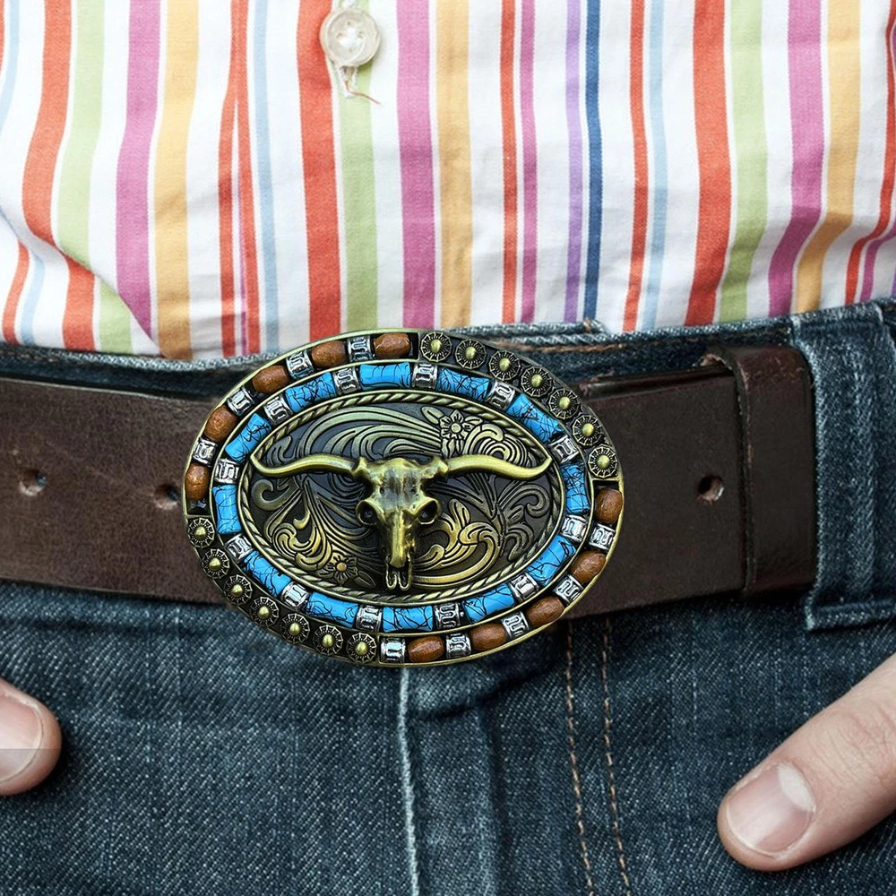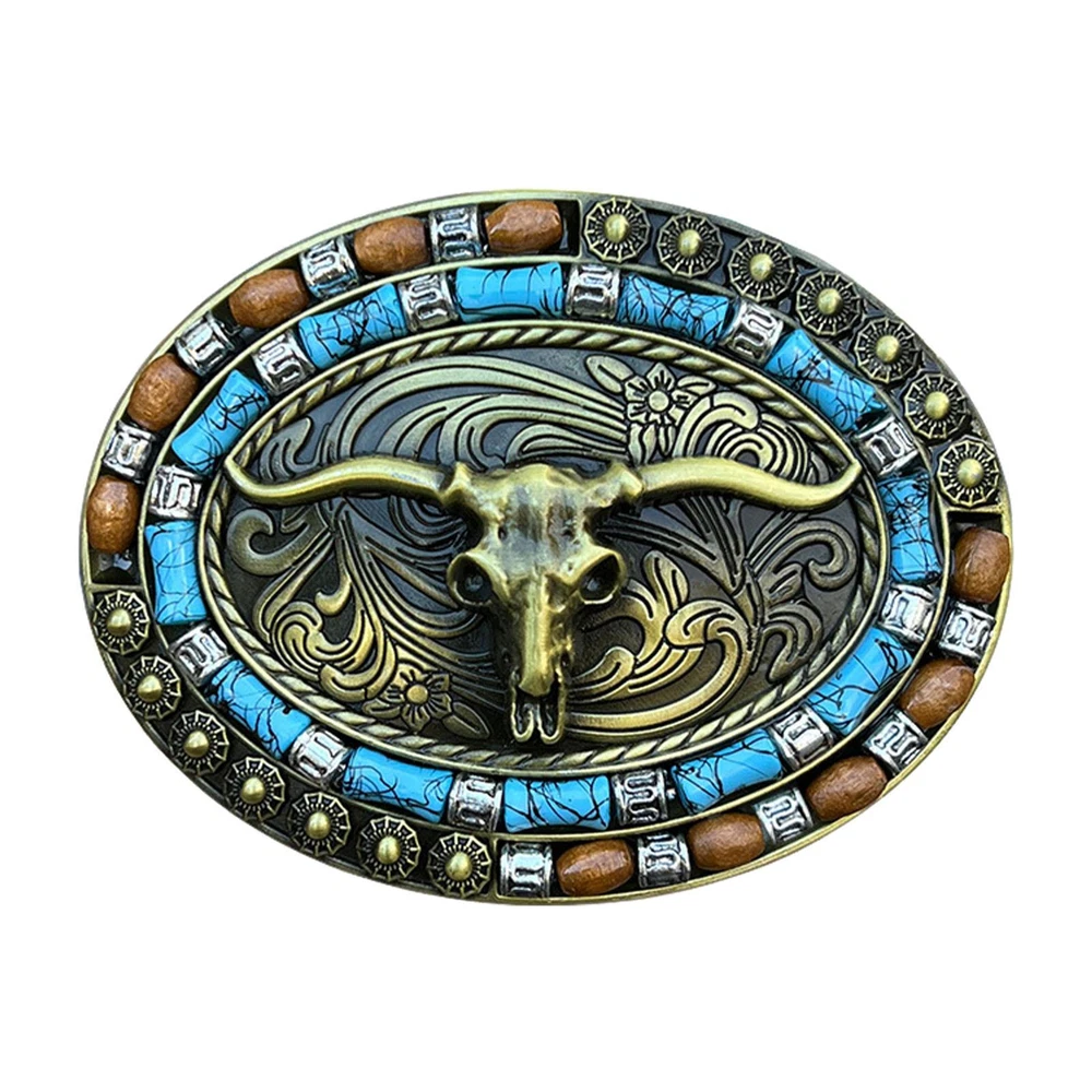 Western Belt Buckle Cowboy Western Buckles Horn Bull Pattern Belt Buckle
