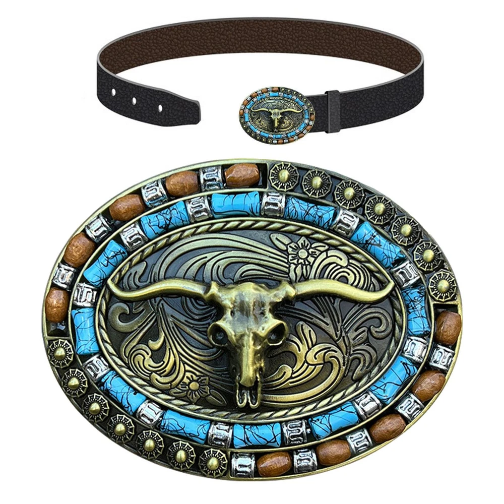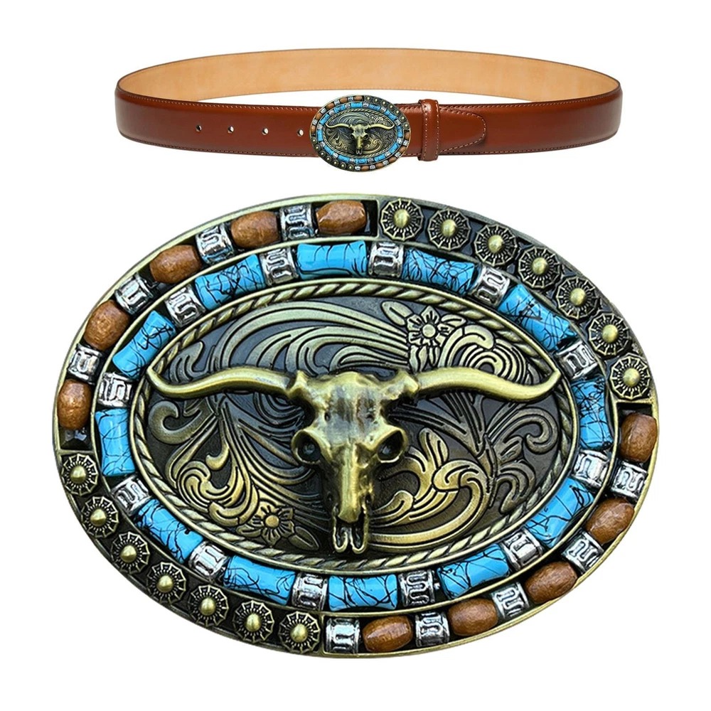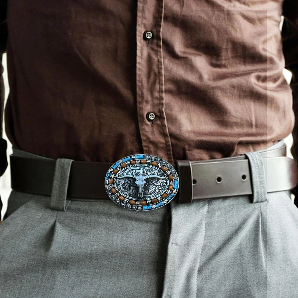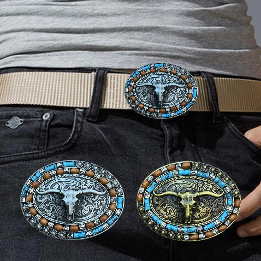 Western Belt Buckle Cowboy Western Buckles Horn Bull Pattern Belt Buckle