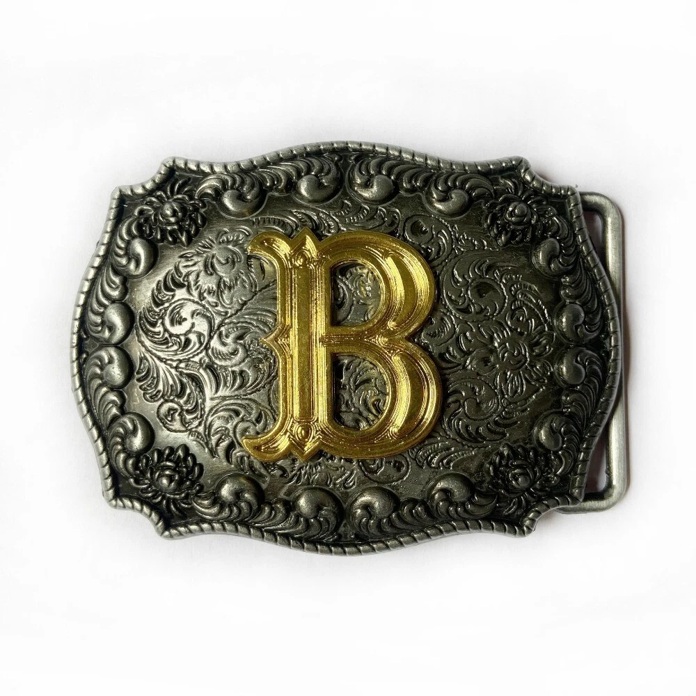 Western Belt Buckle for Men Cowboy Rodeo Vintage Style Wear Alphabet Letter B