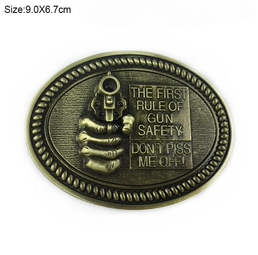Add some Western flair to your outfit with this fun and unique belt buckle. Featuring a gun theme, this buckle is perfect for cowboys and cowgirls who want to add a touch of personality to their wardrobe. Made from zinc alloy, this buckle is durable and built to last. The Western style design making it a great addition to any western cowboy rodeo outfit. This belt buckle fits belts up to 1.5 inches wide and is perfect for men who want to show off their love for the Wild West.