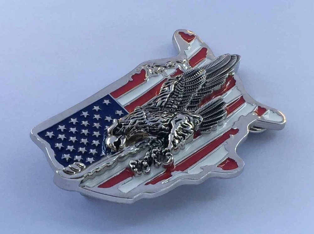 Western Belt Buckle for Men USA Cowboy Rodeo Wear - American Map Flag with Eagle