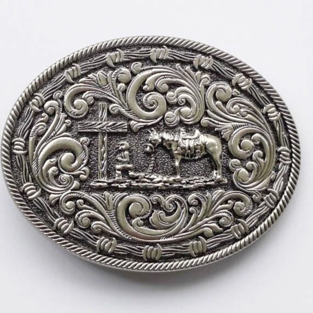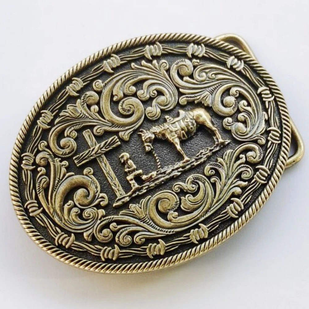 Western Belt Buckle for Men Women Cowboy Rodeo Vintage Style Floral Cross Prayer
