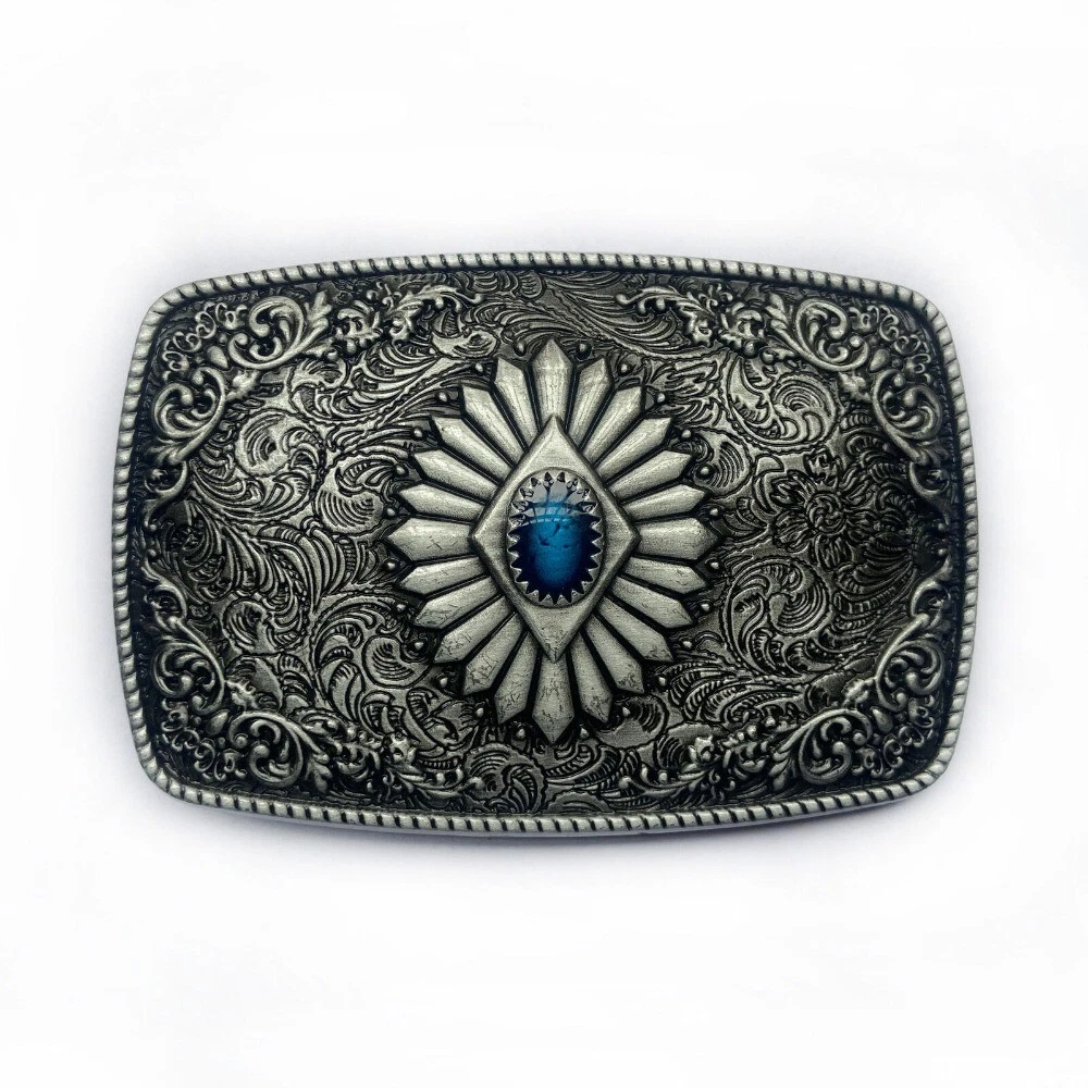 Western Belt Buckle for Men & Women Cowboy Rodeo Vintage Style Floral Engraved