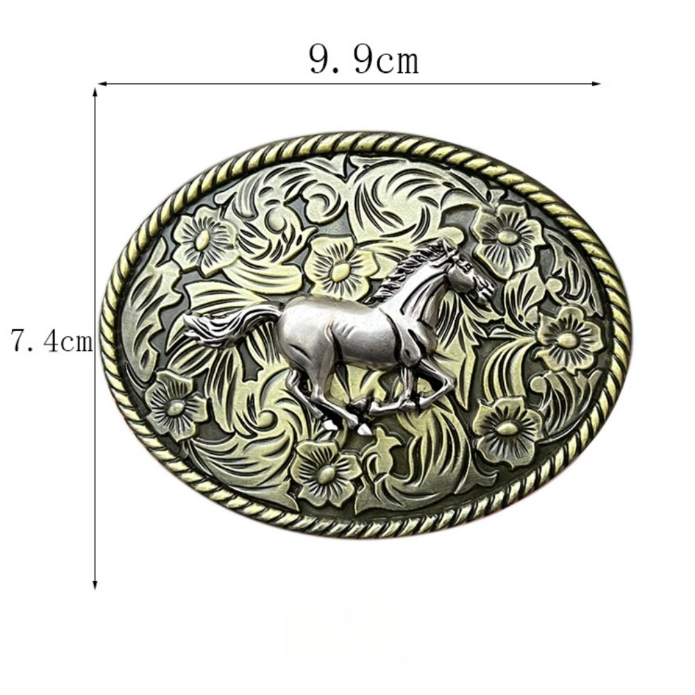 Western Belt Buckle for Men Women Cowboy Rodeo Vintage Style Wear Running Horse