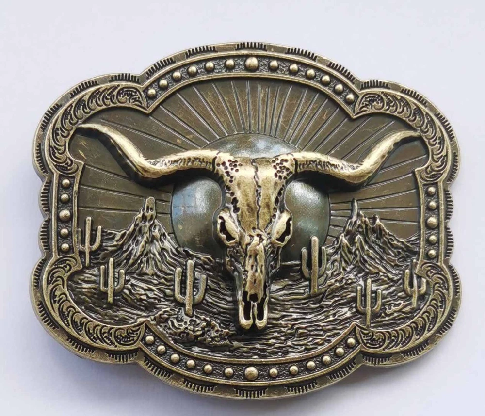 Solid Brass Western Belt Buckle Men & Women Cowboy Rodeo Vintage Style Wear Bull
