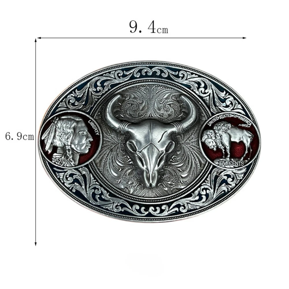 Western Belt Buckle for Men Women Cowboy Rodeo Vintage Style Wear Buffalo Skull