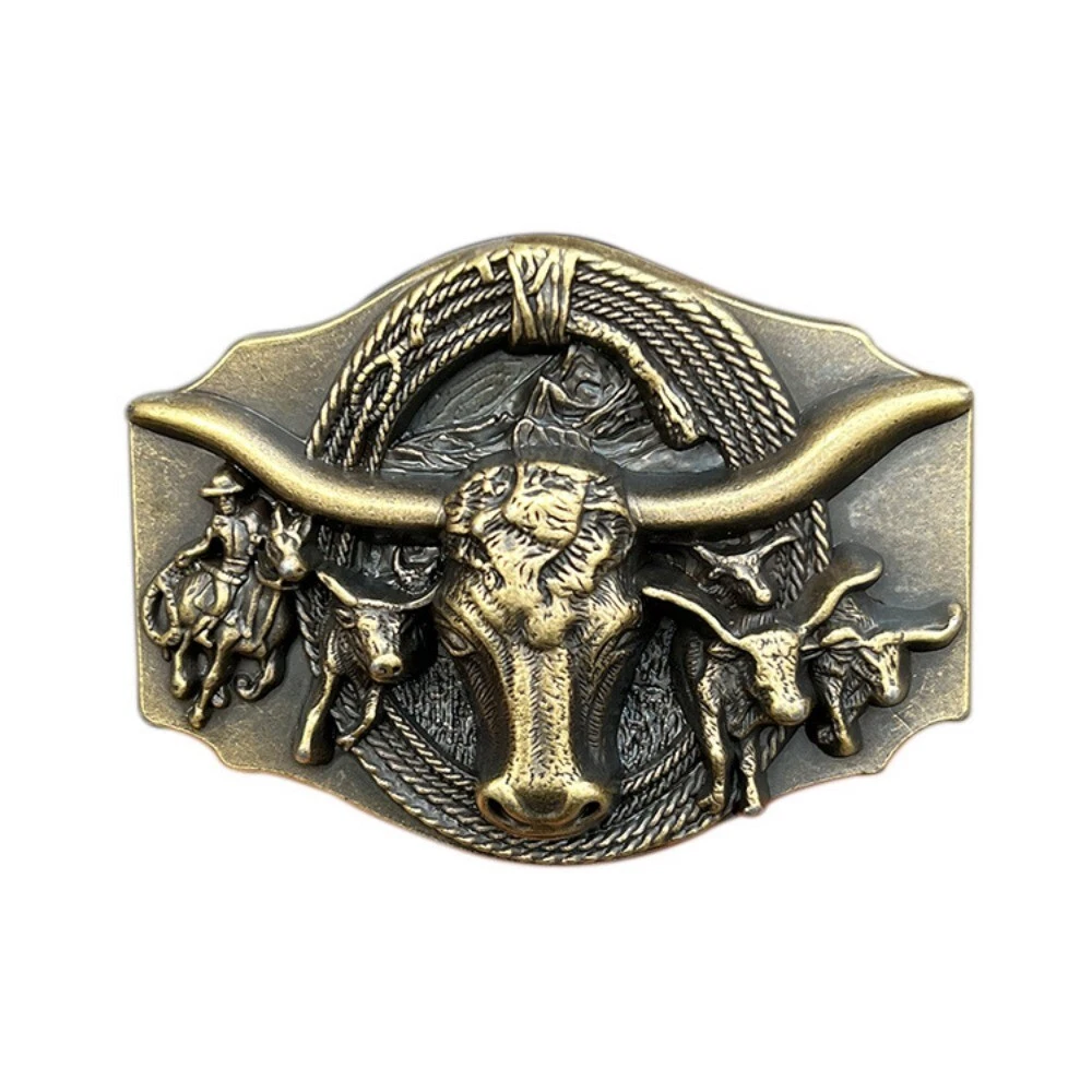 Western Belt Buckle for Men Women Cowboy Rodeo Vintage Style Wear Buffalo Skull