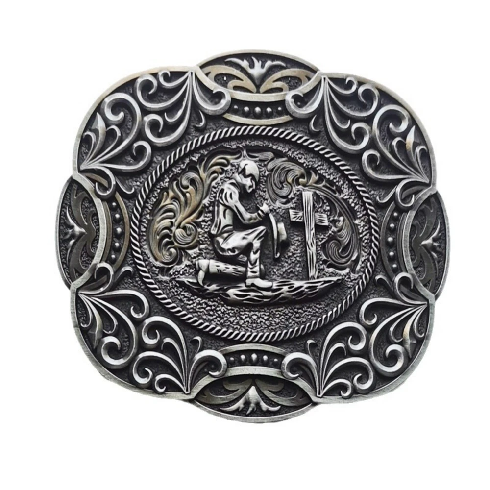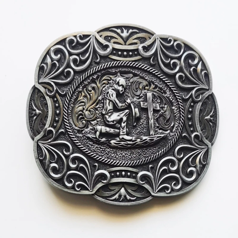 Western Belt Buckle for Men Women Cowboy Rodeo Vintage Style Wear Cross & Prayer