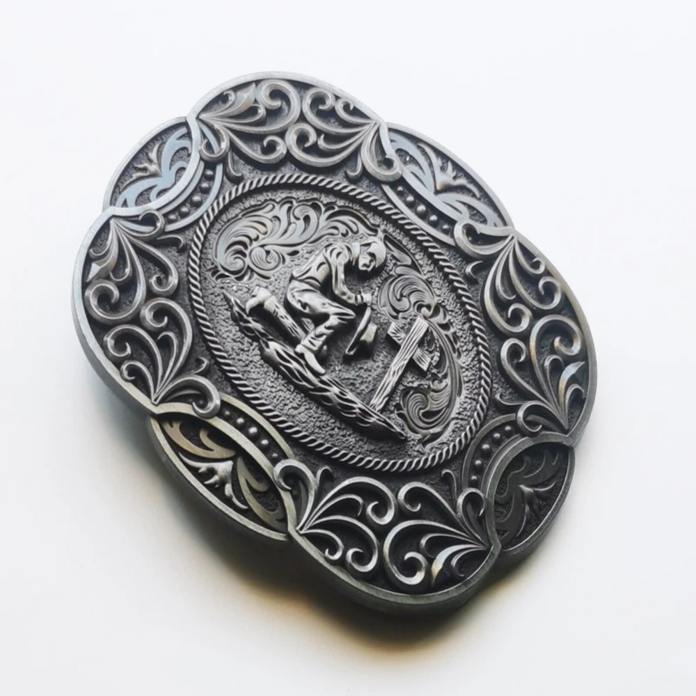 Western Belt Buckle for Men Women Cowboy Rodeo Vintage Style Wear Bull Roping