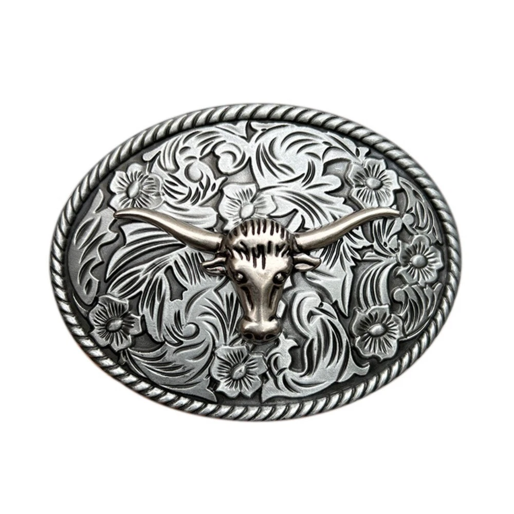 Western Belt Buckle for Men & Women Cowboy Rodeo Vintage Style Wear Floral Bull
