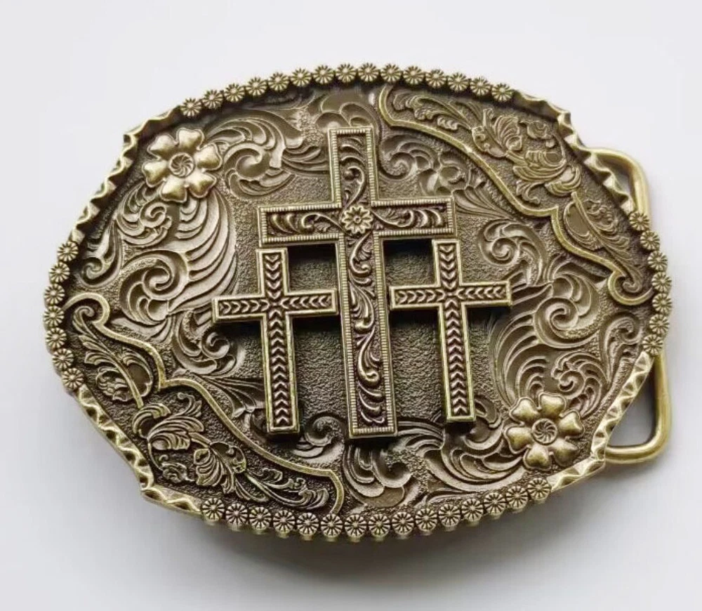 Western Belt Buckle for Men Women Cowboy Rodeo Vintage Style Wear Floral Crosses