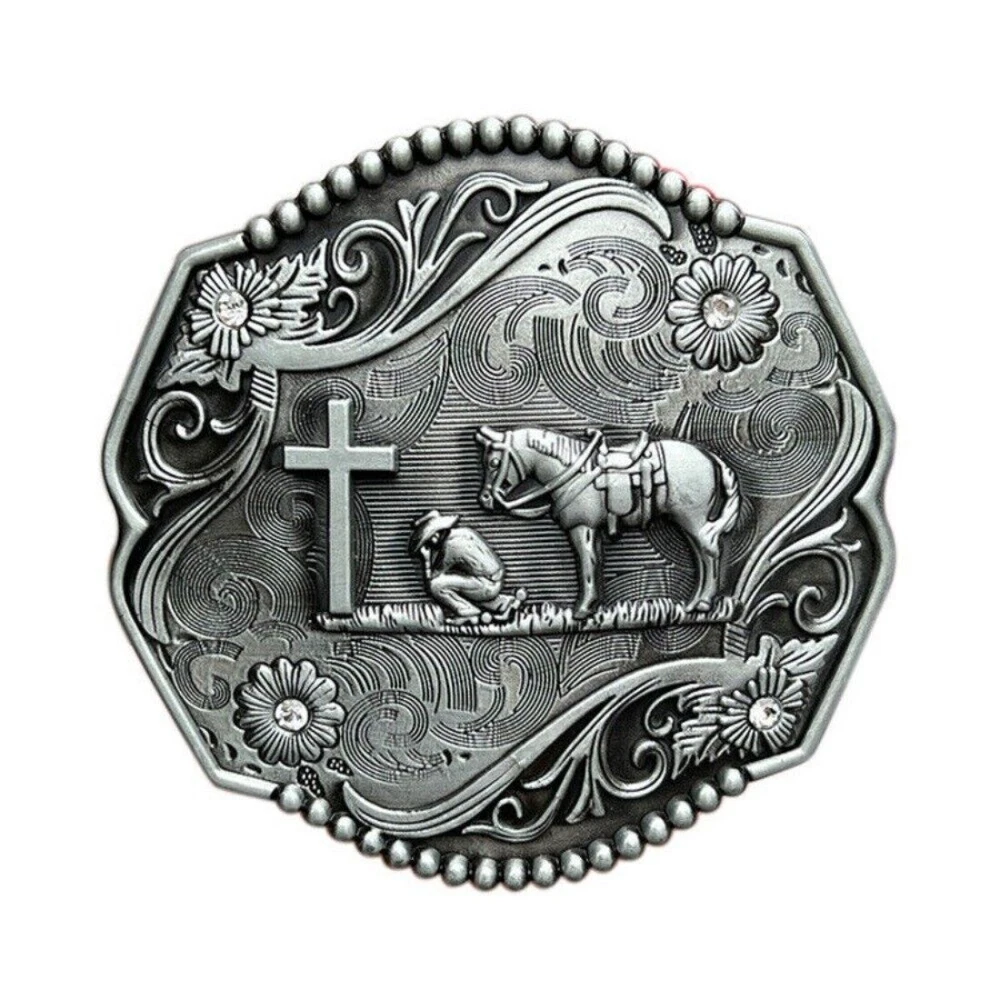 Western Belt Buckle for Men Women Cowboy Rodeo Vintage Style Wear Prayer & Horse