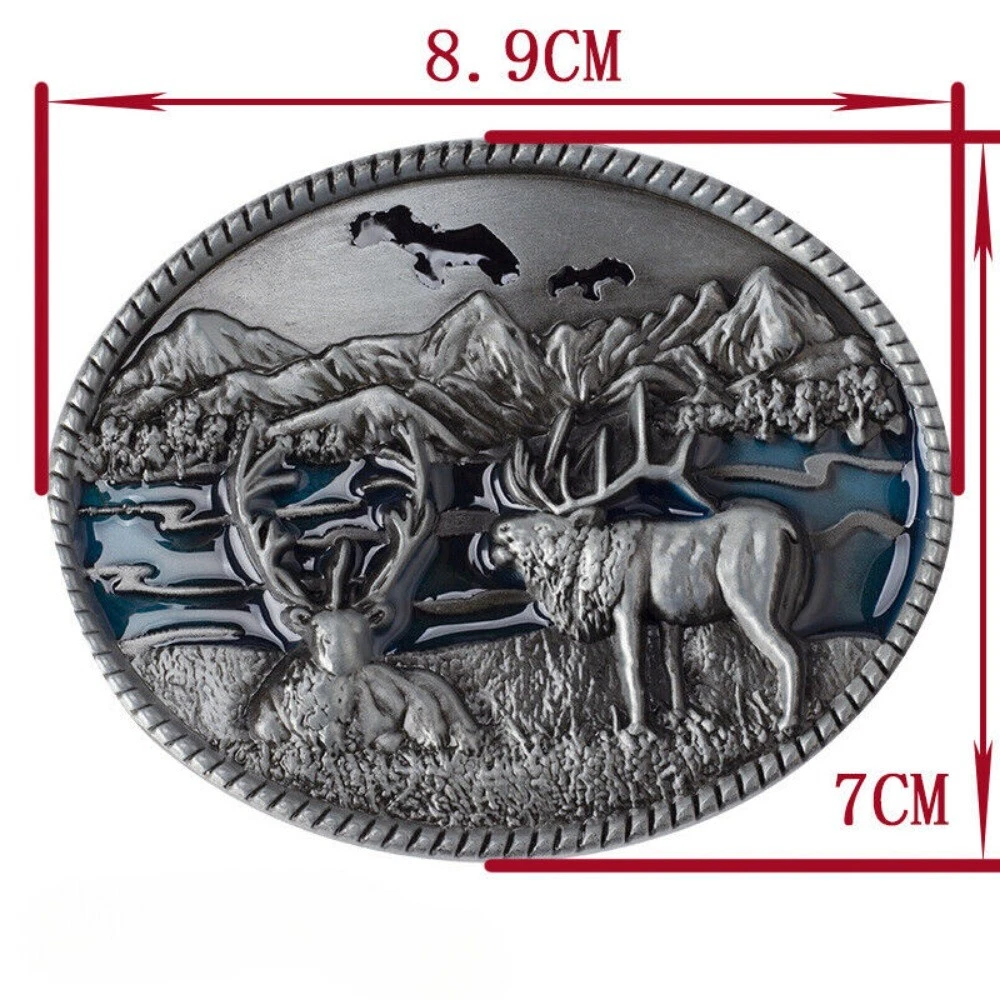 Western Belt Buckle for Men & Women Cowboy Rodeo Vintage Style Wild Life Deer
