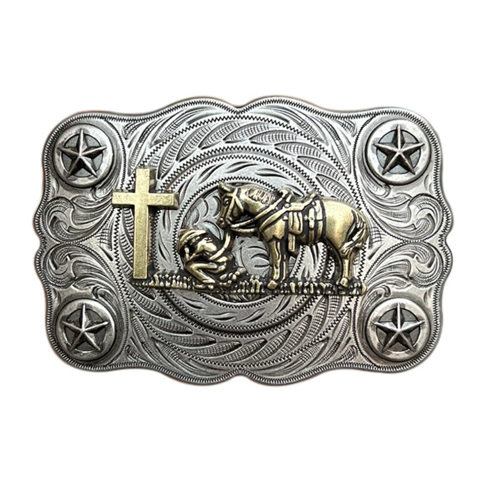 Western Belt Buckle for Men & Women Cowboy Vintage Style Wear Cross & Prayer