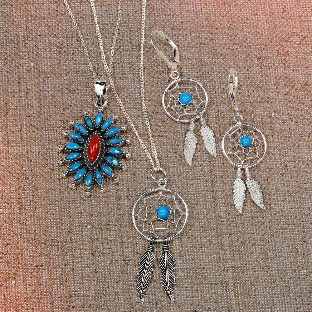 Inspired By Authentic Native American Dreamcatcher, was created to capture all dreams, filter out the bad ones and allow the your good dream to flourish. This southwestern style, dream catcher pendant is made of sterling silver and Stabilized Turquoise. With an open Native American design this 1.8in pendant has a 16in chain and is a Boho chic gift shes sure to love. Material: Compressed Turquoise Stone: 4mm, .925 Sterling Silver, HYPOALLERGENIC - Lead-Free Nickle-free. Each piece is stamped .925 guarantees the quality and craftmanship. Measure: 1.8 Inch Pendant With Adjustable 16- 18 Inch 2 Inch Extender Chain Weight: 2.7 Grams If you love Southwestern style jewelry, you will adore our compressed Turquoise cz dream catcher necklace. Woven dream catchers, with feathers dangling down and a bright Turquoise ball in the middle. Thoughtful Gifts for Every Occasion: Whether its Mothers Day, an Anniversary, Wedding, Birthday, Holiday, Stocking Stuffer, Christmas, Valentines Day, or Graduation, our exquisite jewelry is the perfect present. Ideal for expressing your love to your Sister, Mother, Grandmother, Daughter, Wife, Girlfriend, Aunt, Mum, Mommy, Grandma, or even for yourself. Its the ultimate gift for anyone special in your life. USA-Based Company with 30-Day After-Sale Service: We take pride in our craftsmanship and product quality. Rest assured, if you receive an item with manufacturing defects, weve got you covered. Click on the link to contact our customer service.