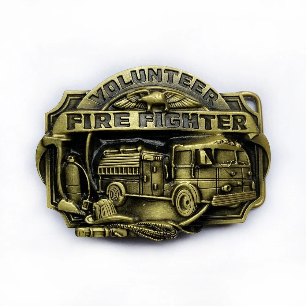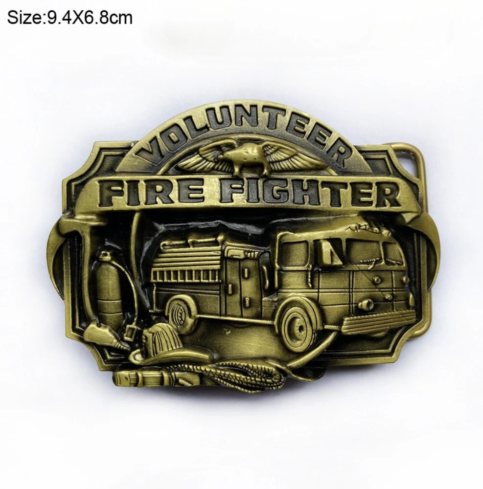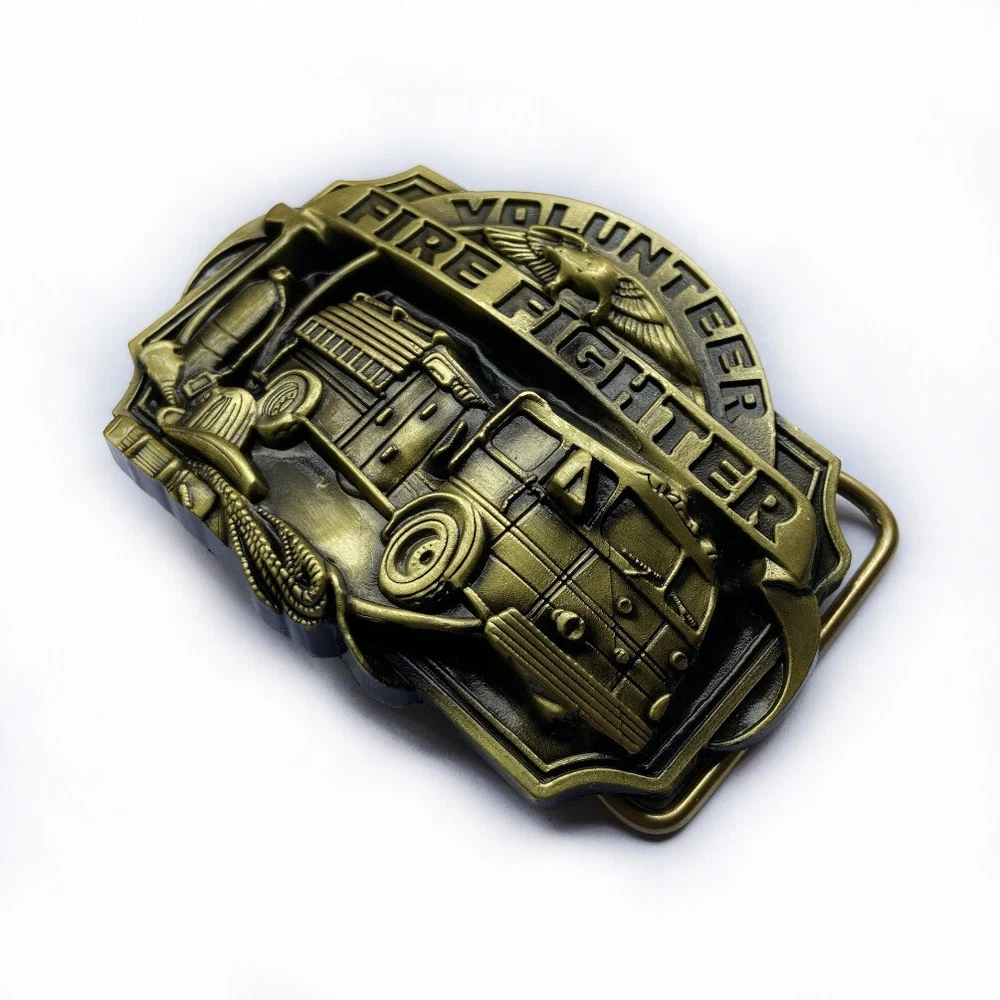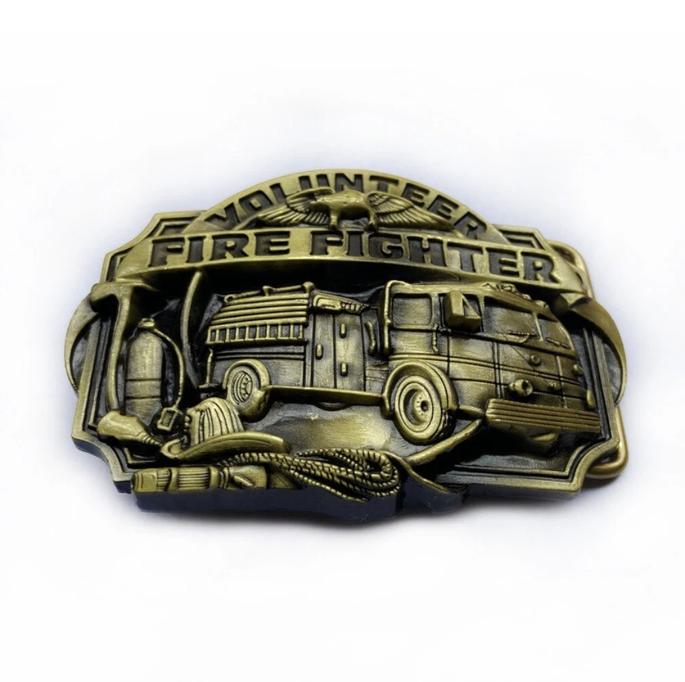Western Cowboy Belt Buckle for Men USA Retro Rodeo Wear - Volunteer Fire Fighter