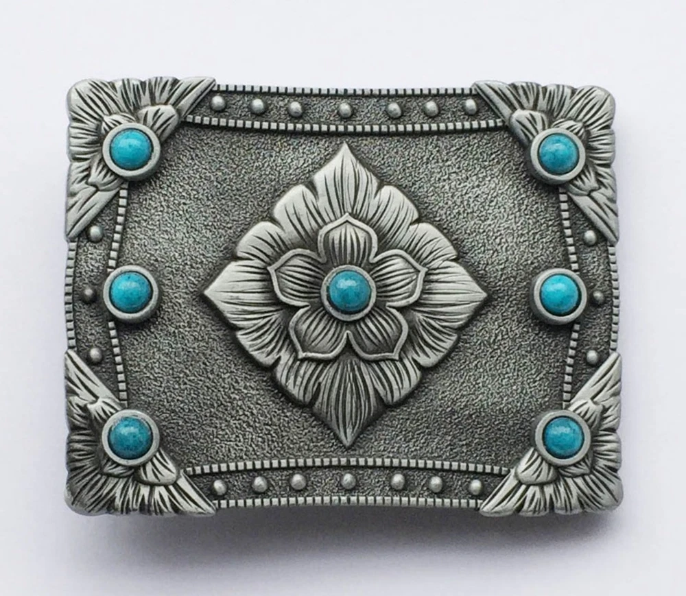 Western Cowboy Belt Buckle for Men Women Rodeo Casual Wear Vintage Style Flower