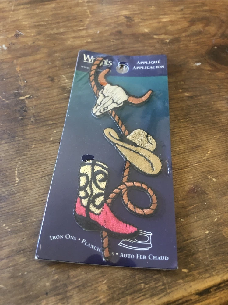 Western Cowboy Hat & Boot Steer Skull Rope 1pc Iron-On Patch Applique Wrights